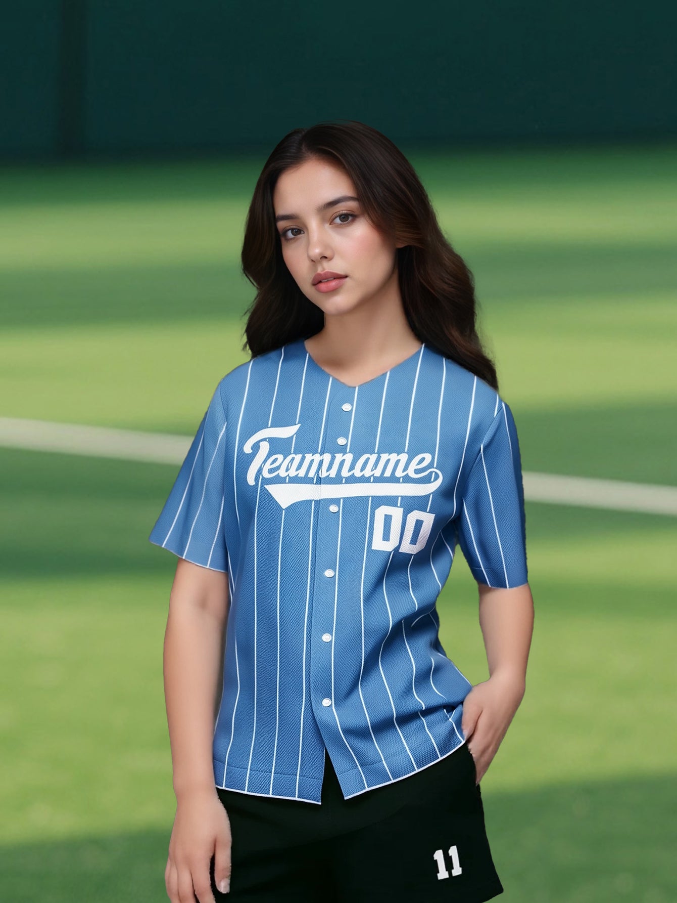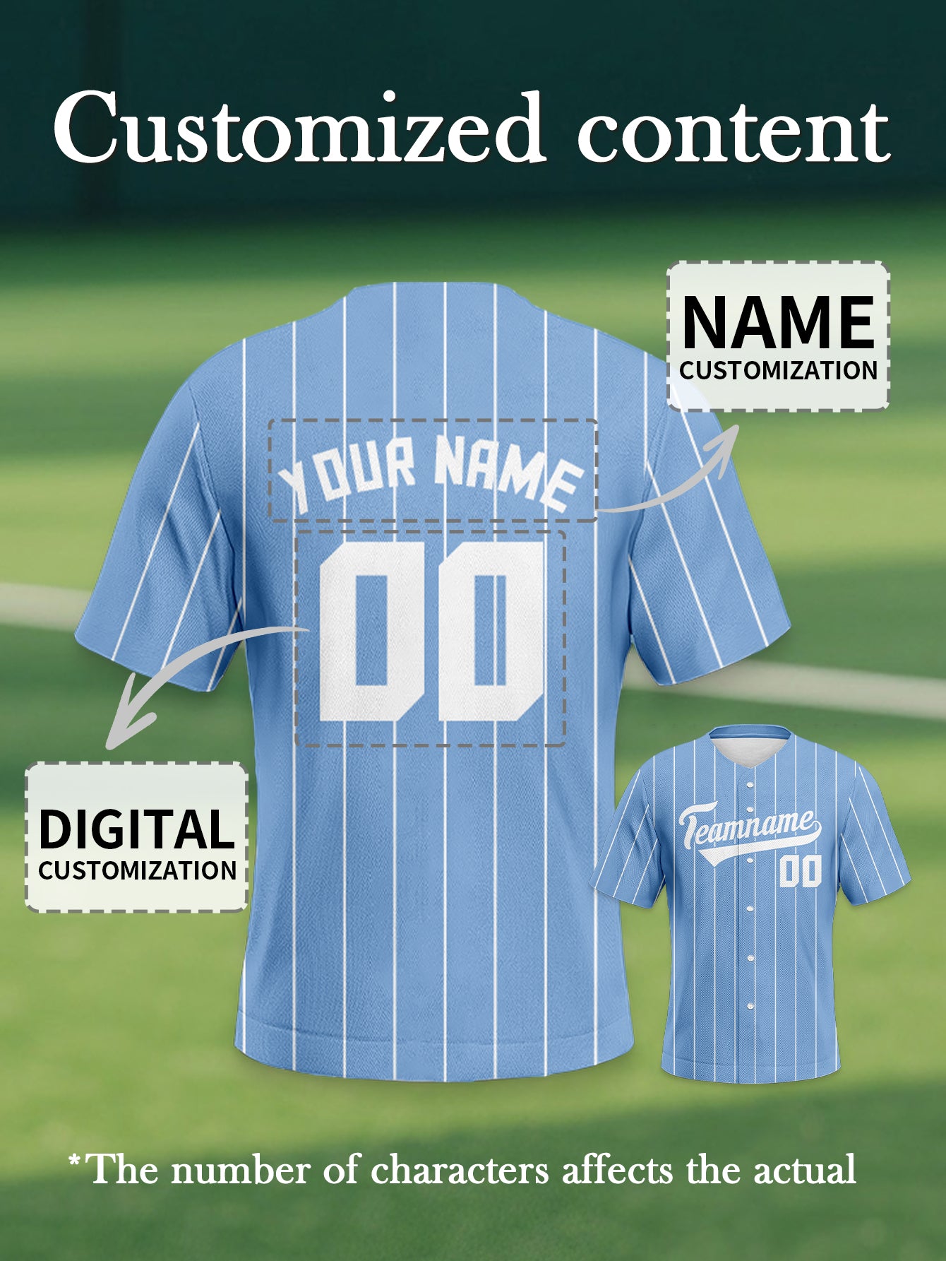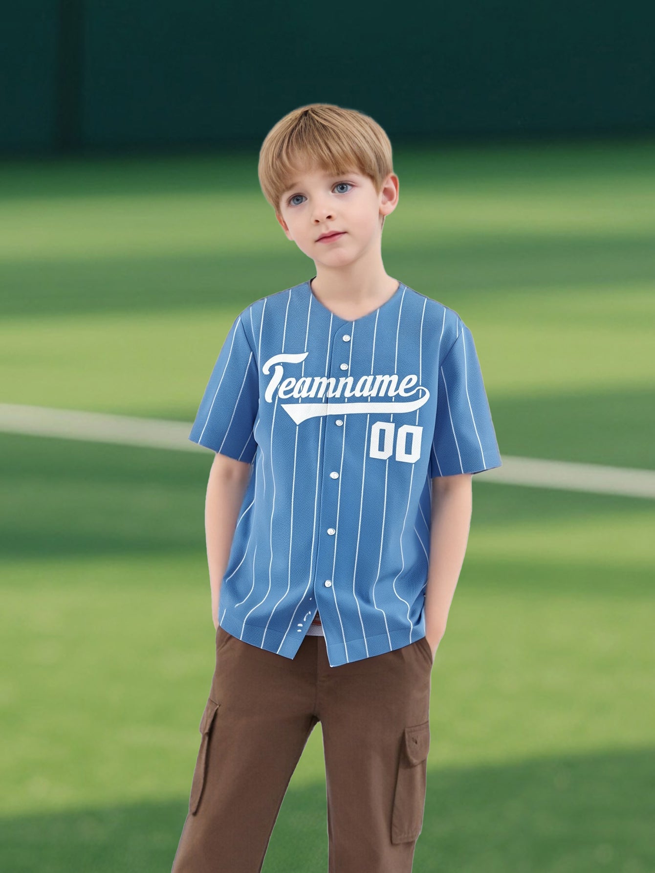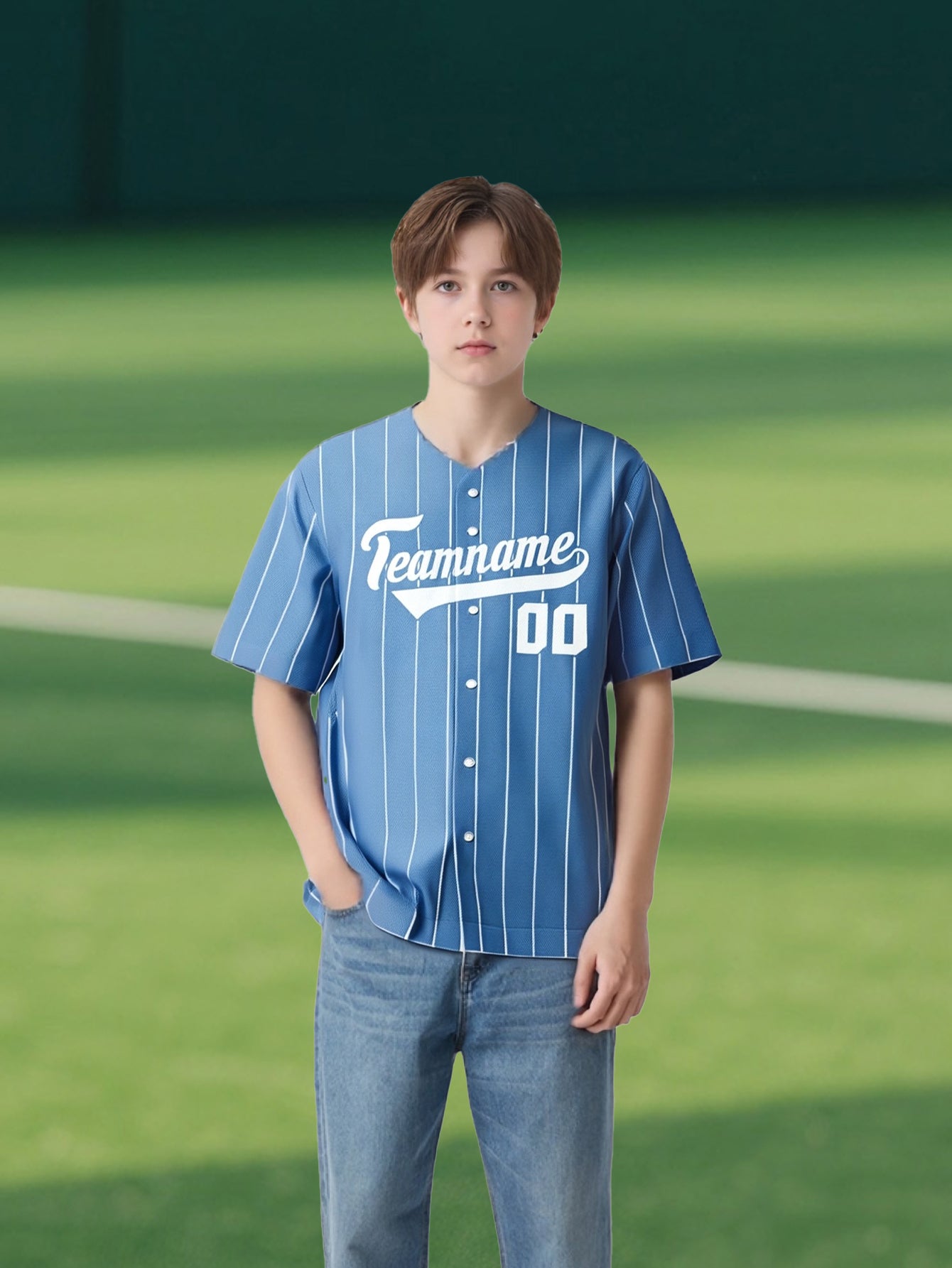 Light Blue Pinstripe Baseball Shirt - Your Name & Chosen Number