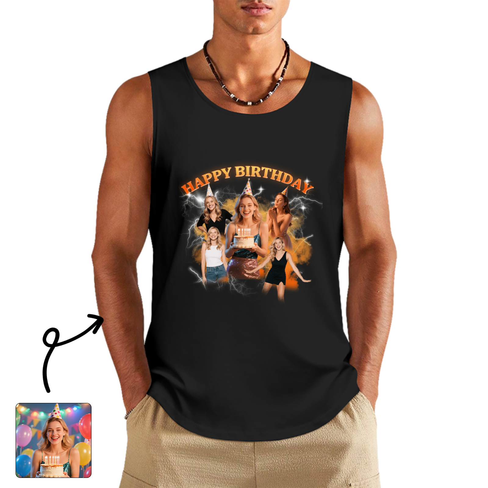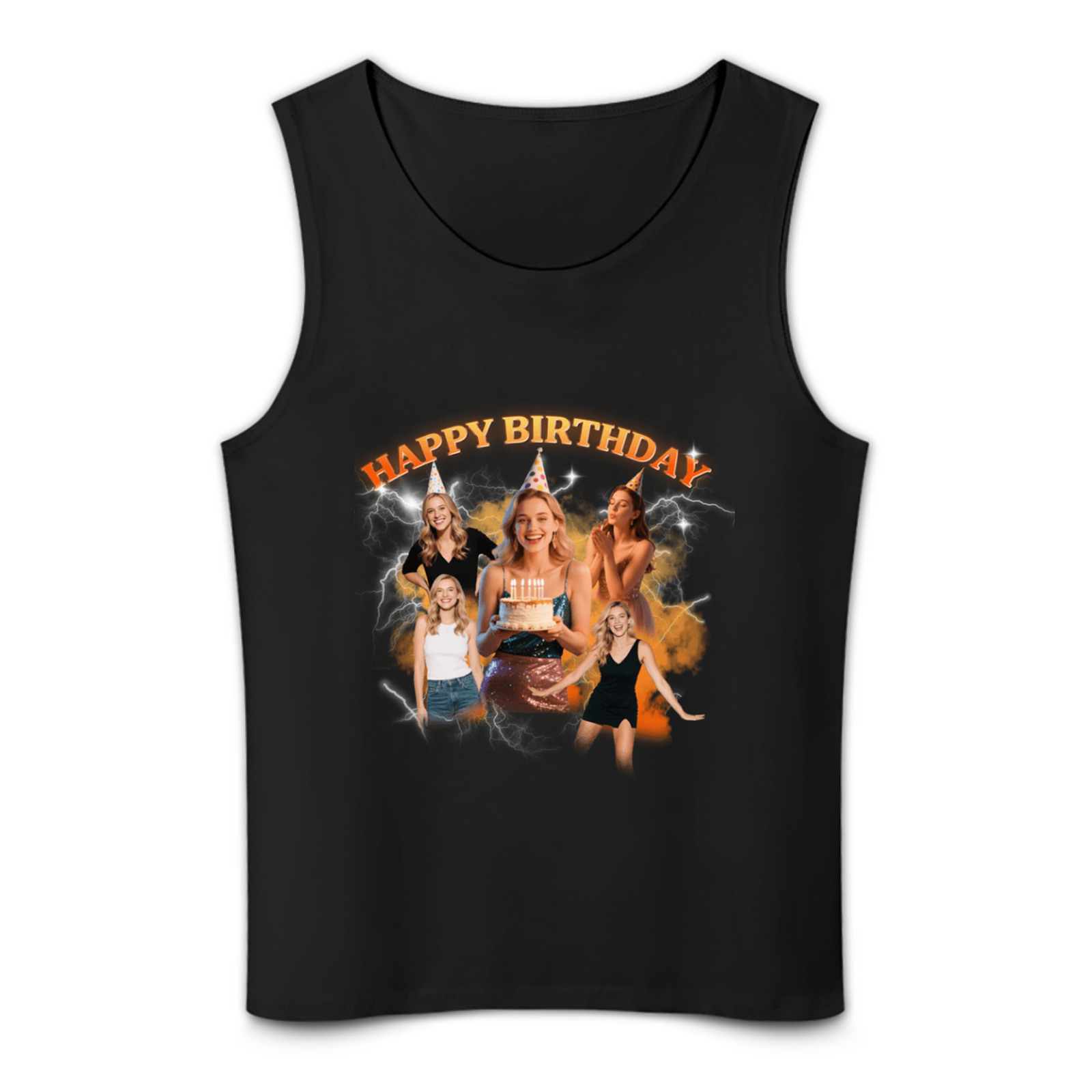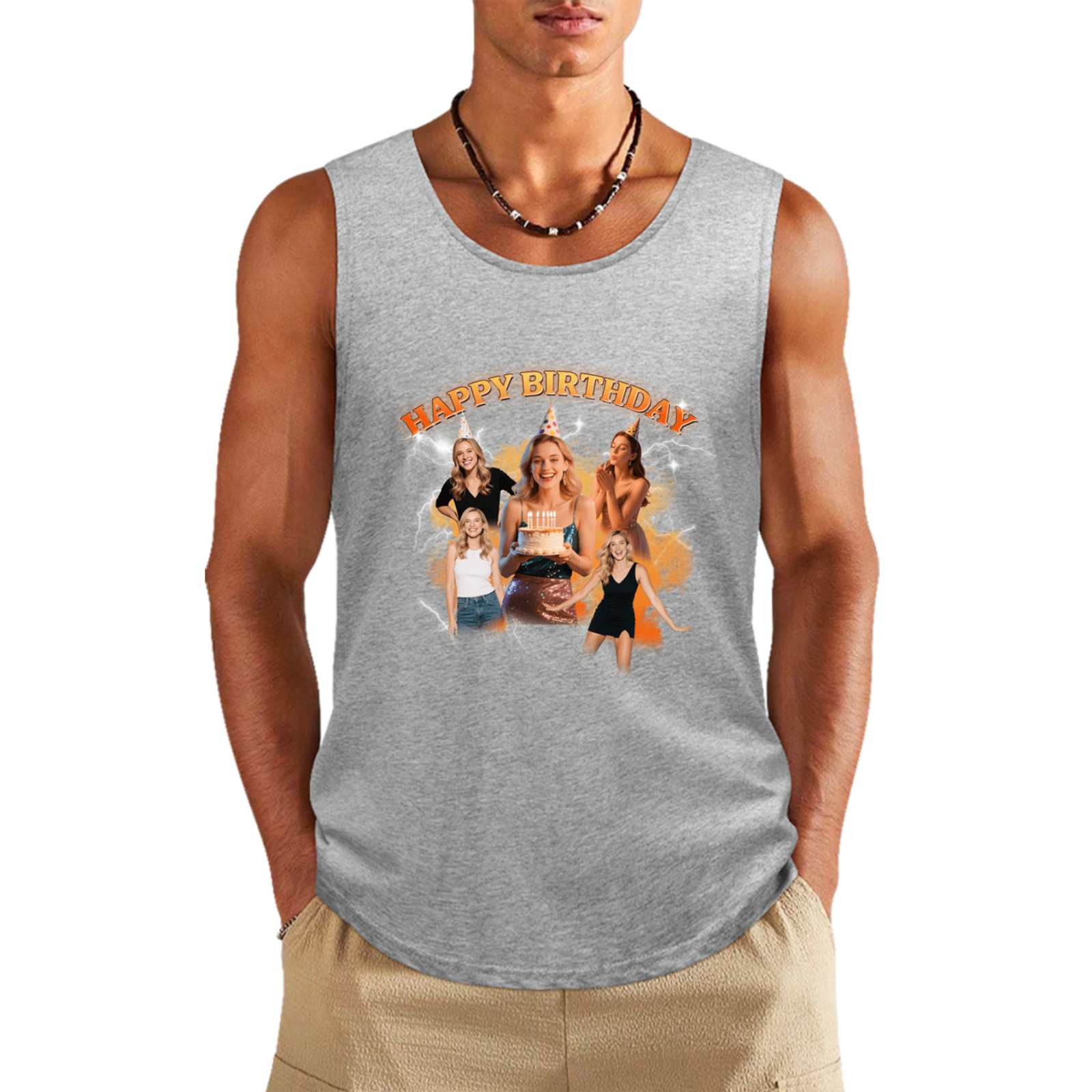 (Local Warehouse) Custom Five Face Birthday Party Tank Top-Orange Color