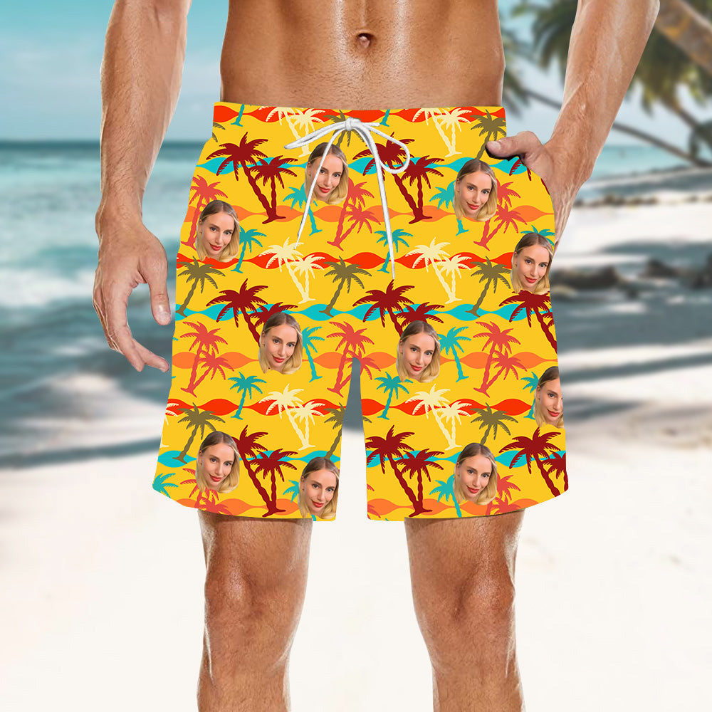 Men's Beach Shorts Customized Summer Shorts Coconut Print Casual Wear