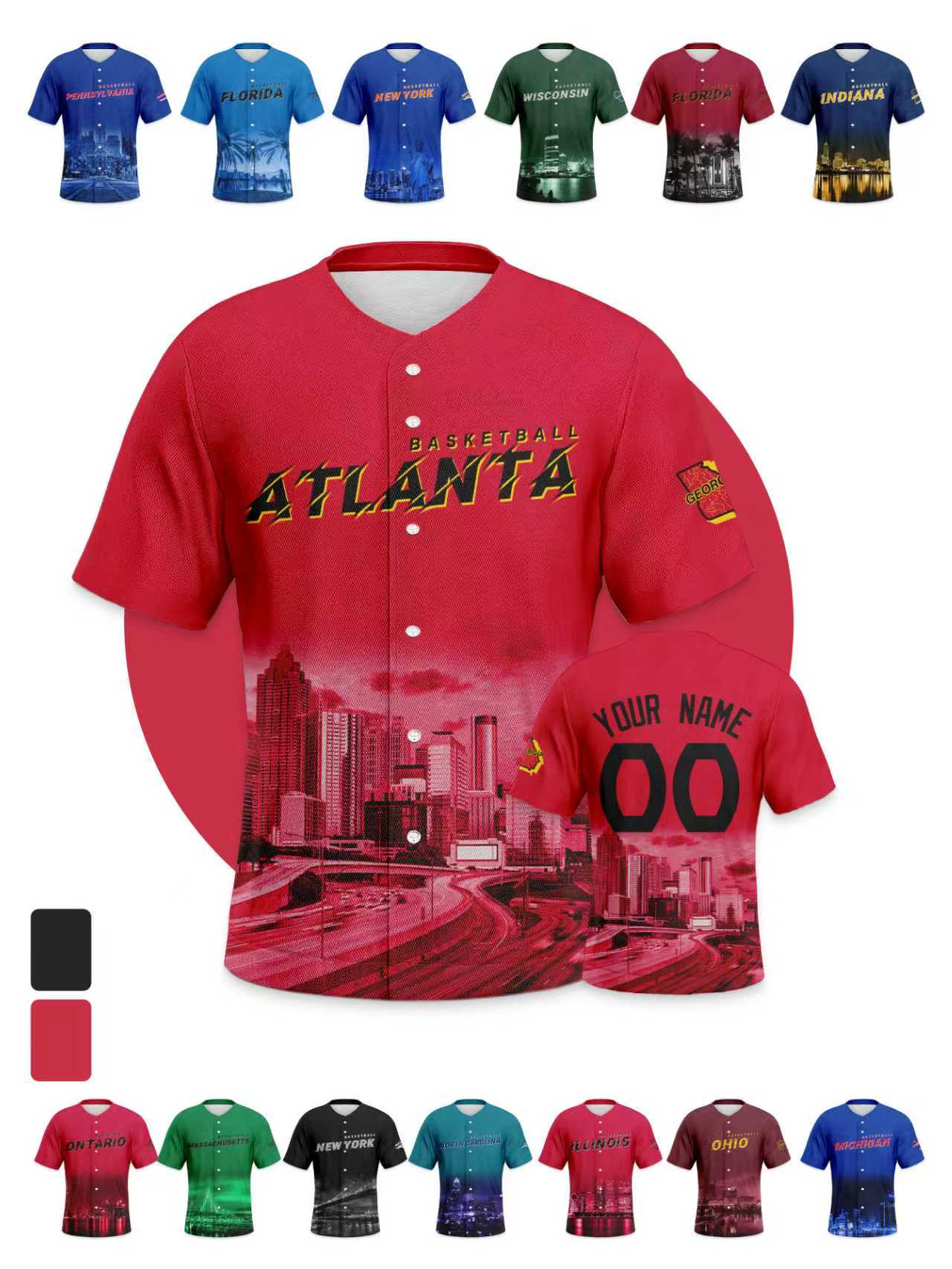Men's Custom Baseball Jersey - State Map Series Personalized Custom Name & Number