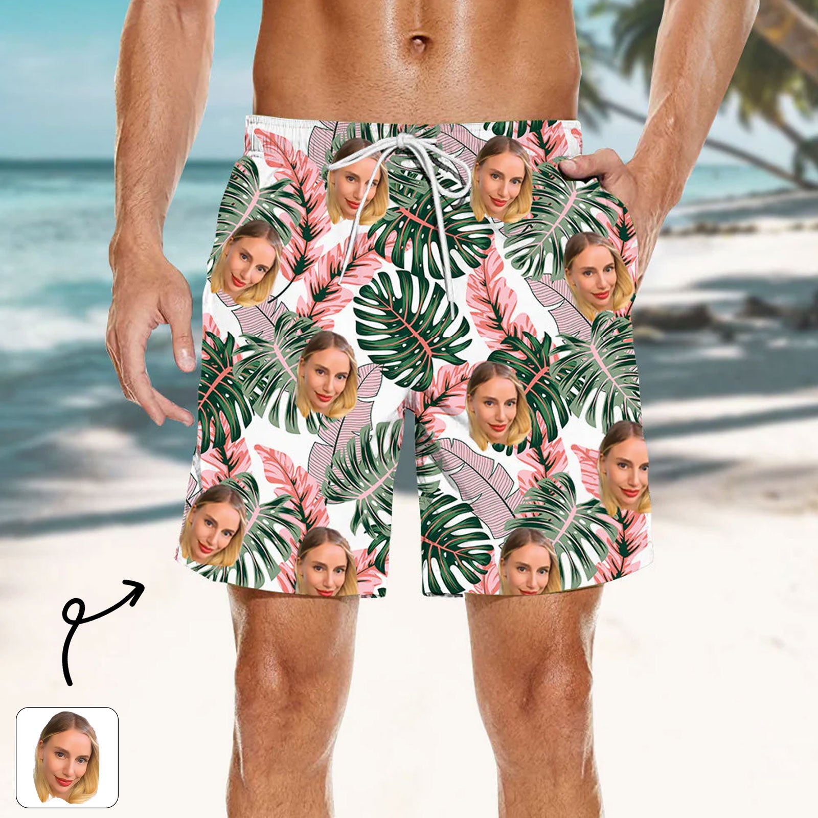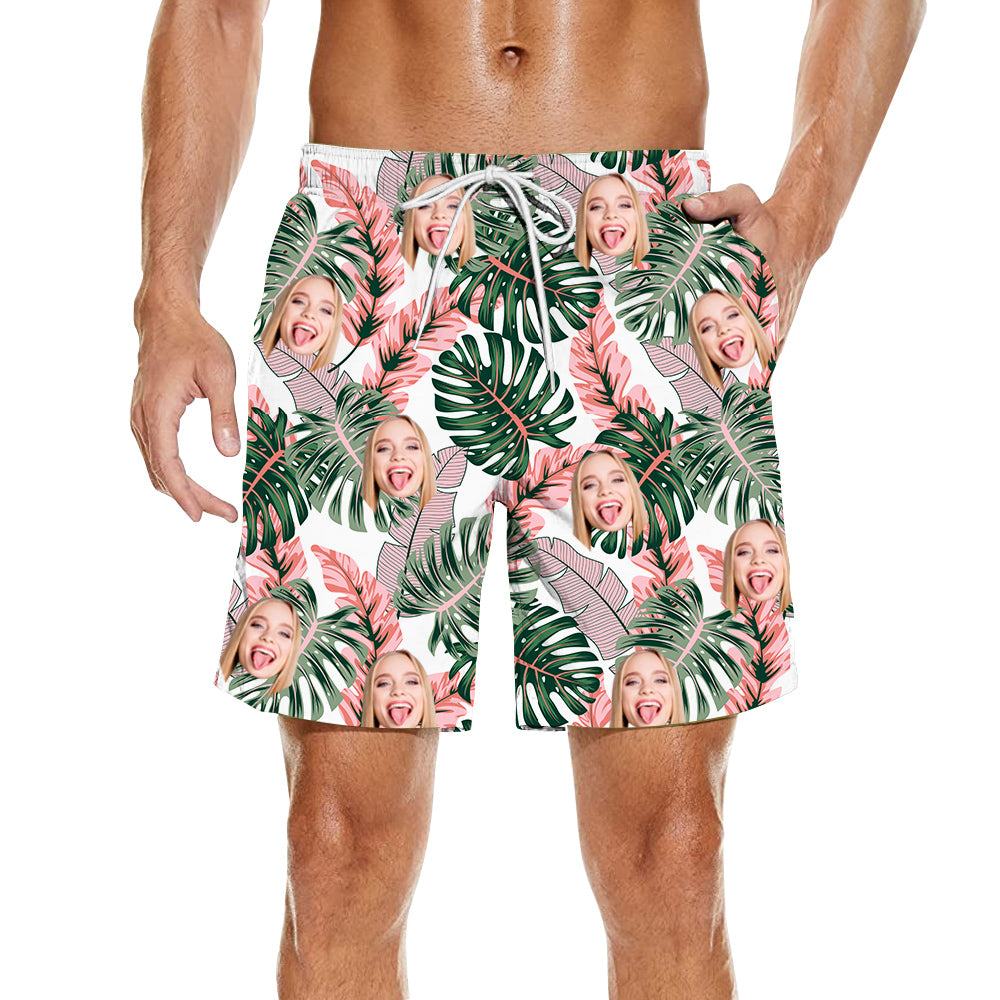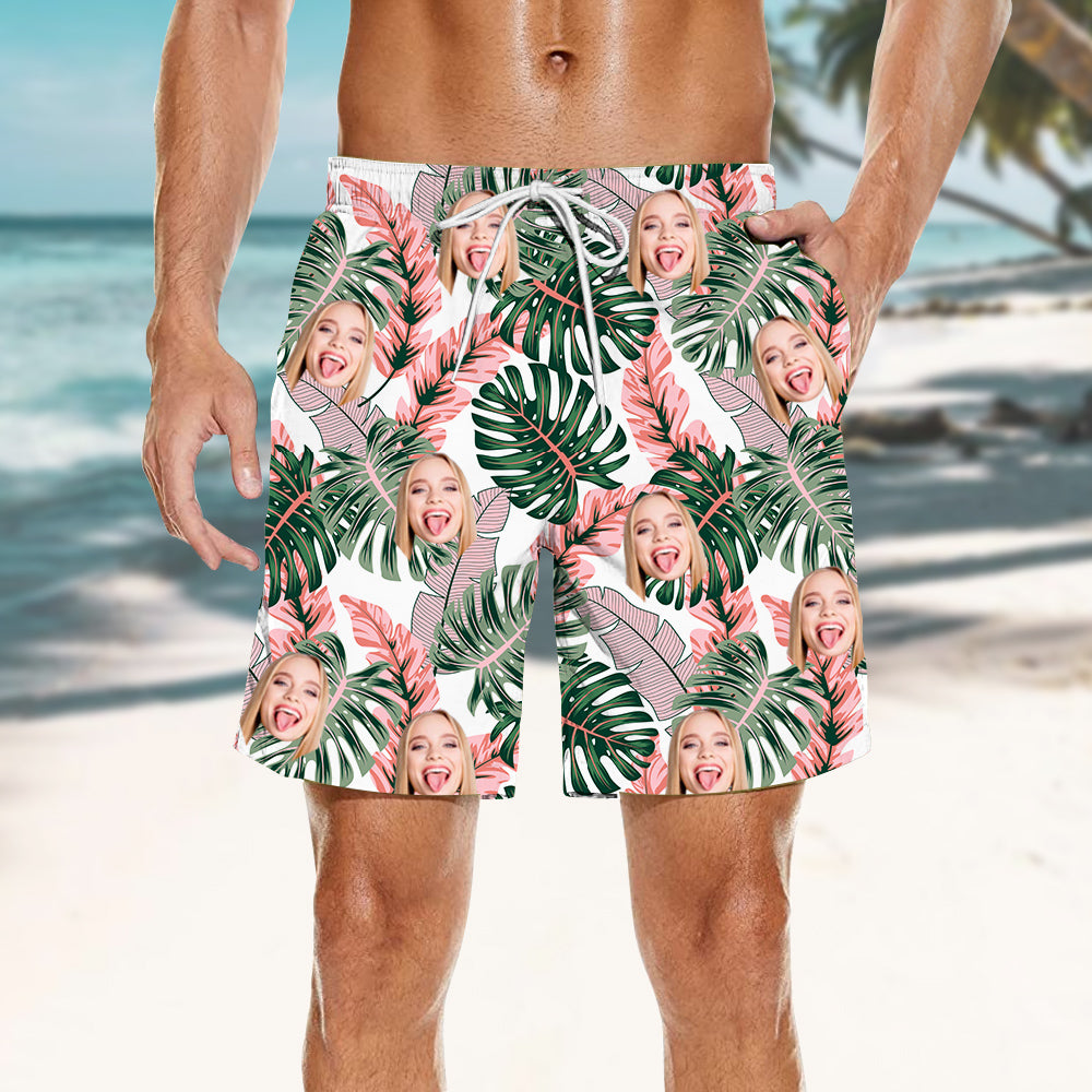 Men's Custom Beach Shorts Tropical Leaf Print Elastic Waist Suitable for All Body Types