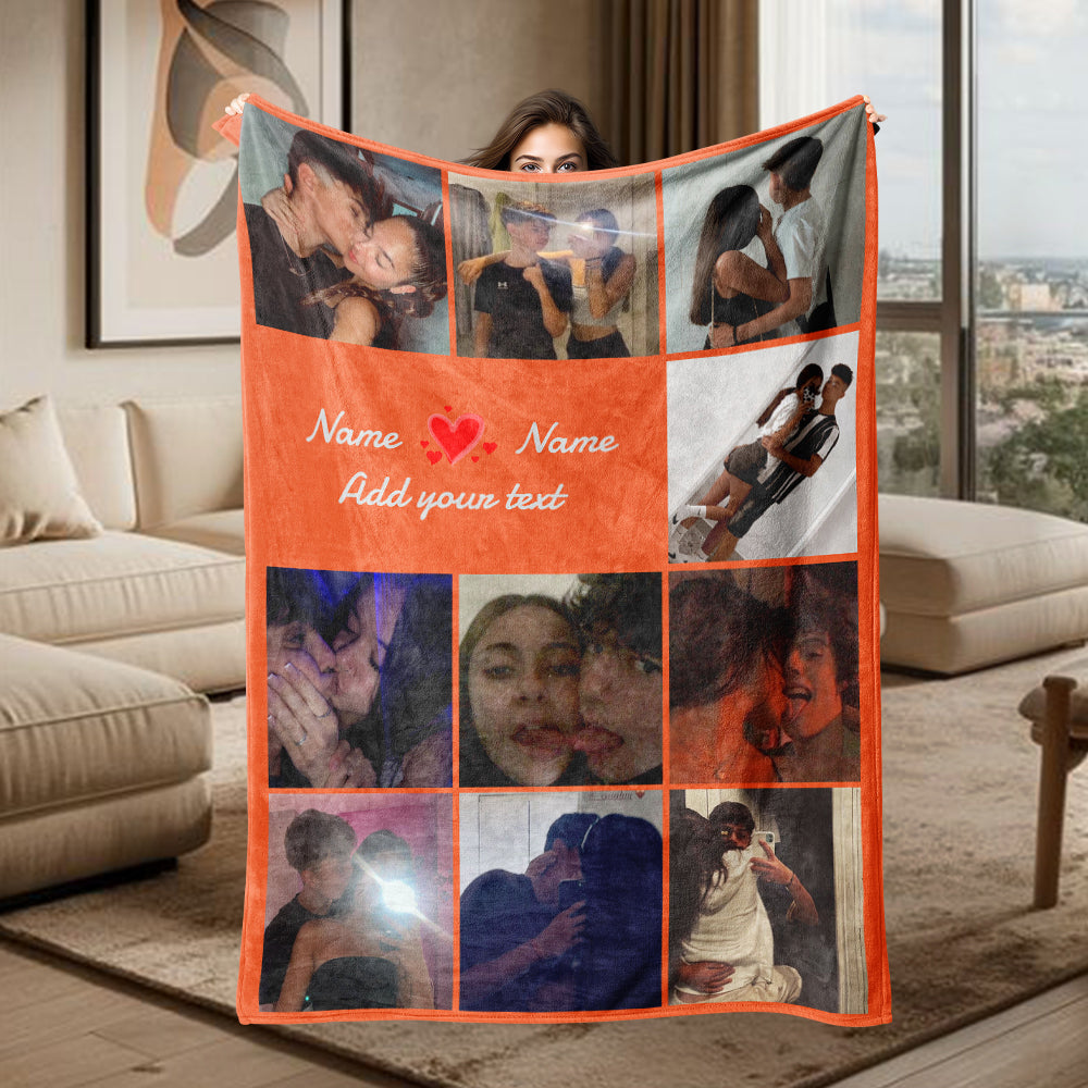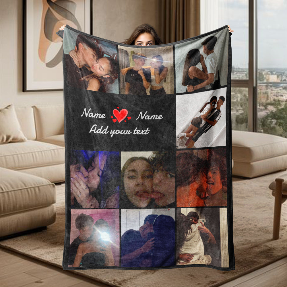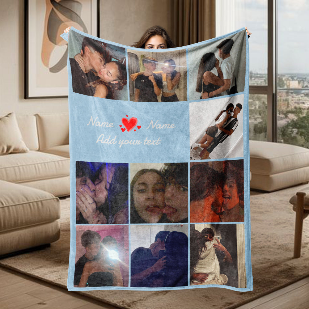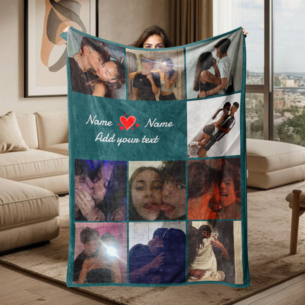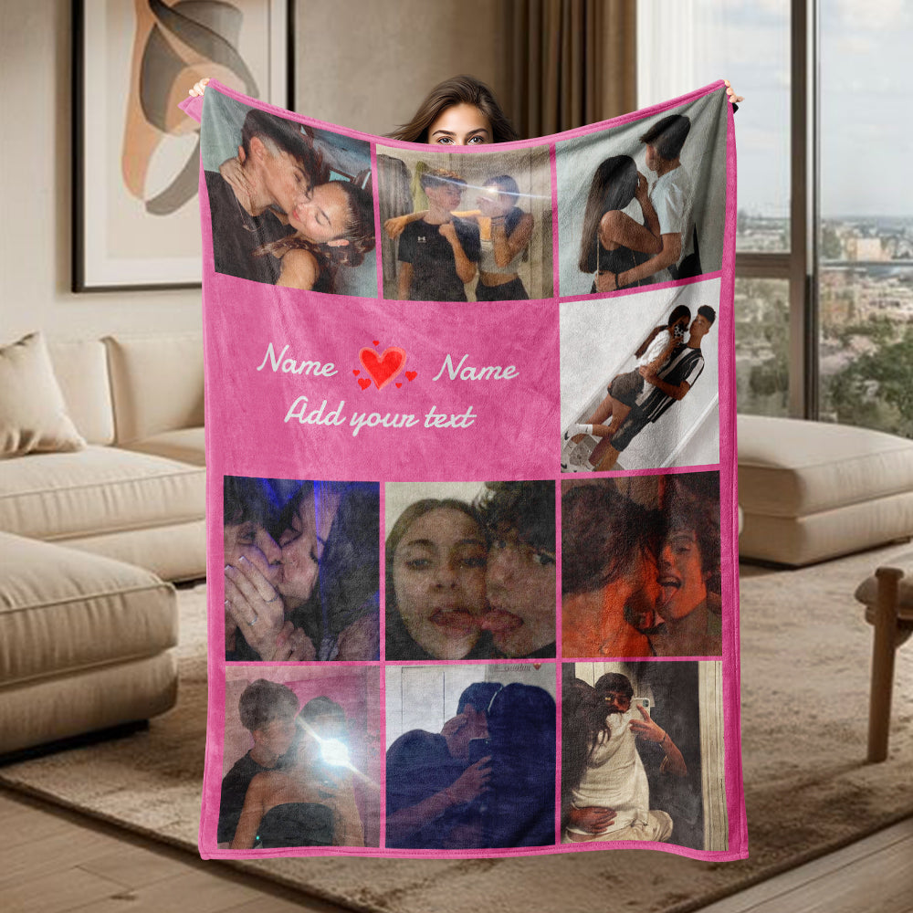 Multiple Colors Personalized 10 Pictures Blanket Customized Name Text Flannel Blanket Upload Couple Photo Valentine's Day Gift
