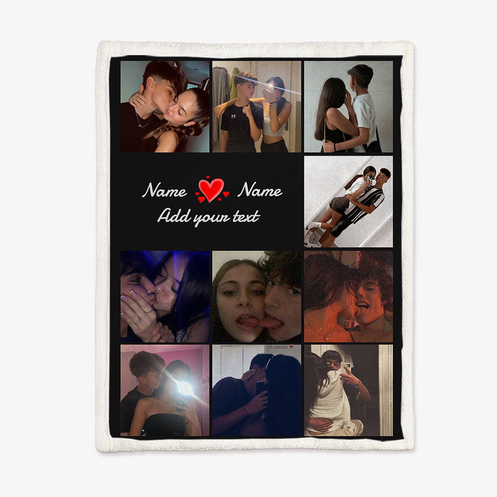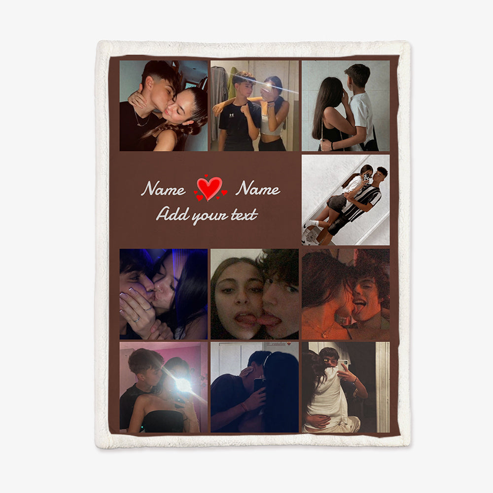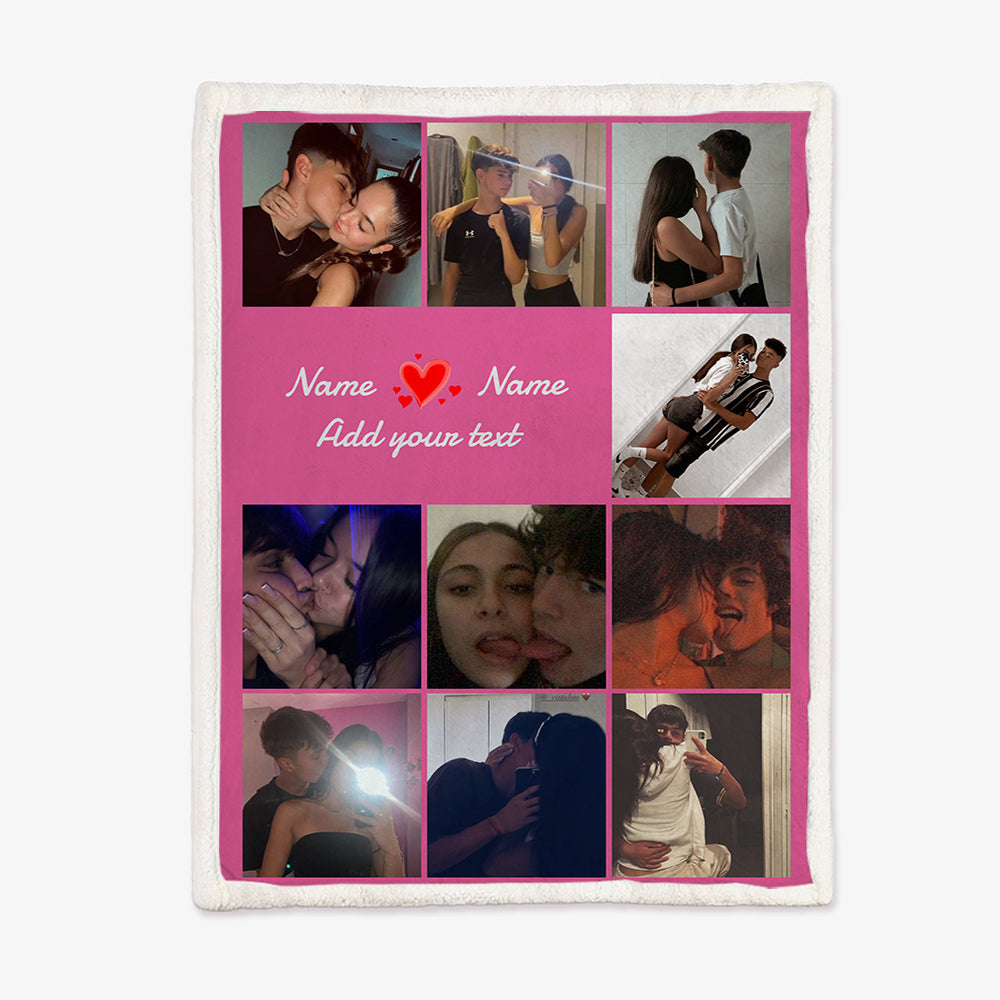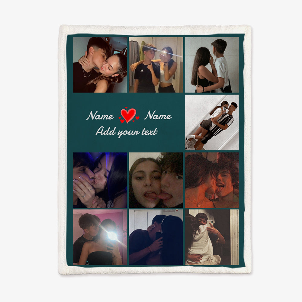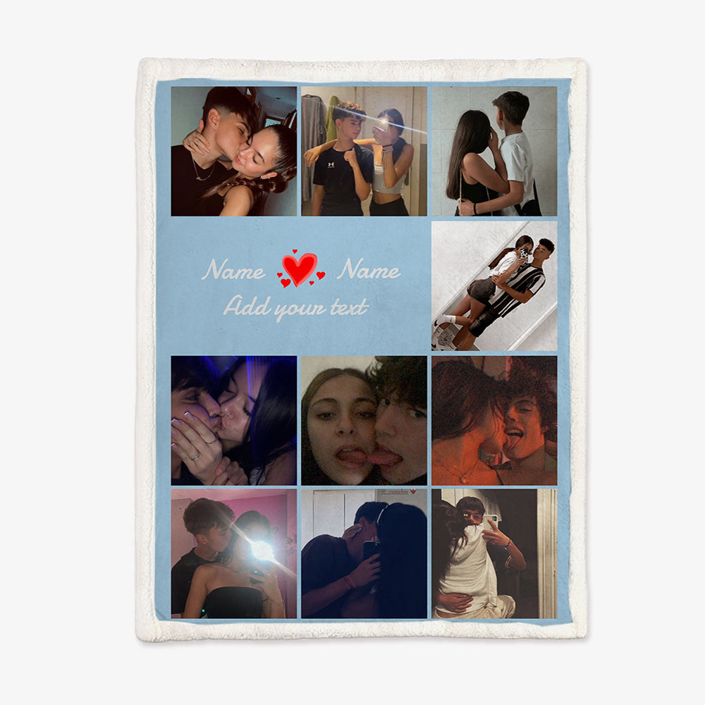 Multiple Colors Personalized 10 Pictures Blanket Customized Name Text Flannel Blanket Upload Couple Photo Valentine's Day Gift