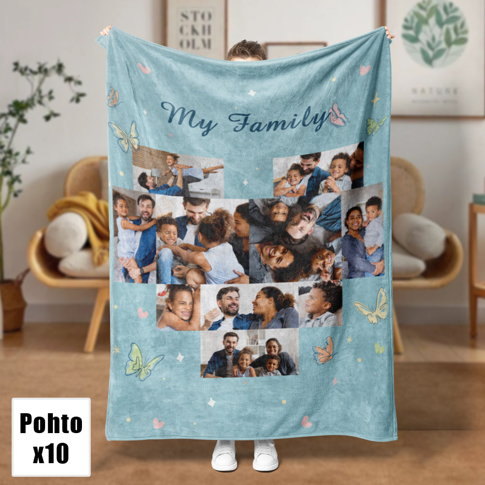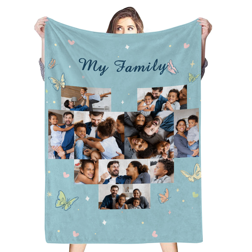 My Family Family Photos Love Heart Stitching Family Gifts Customized Photos Blankets