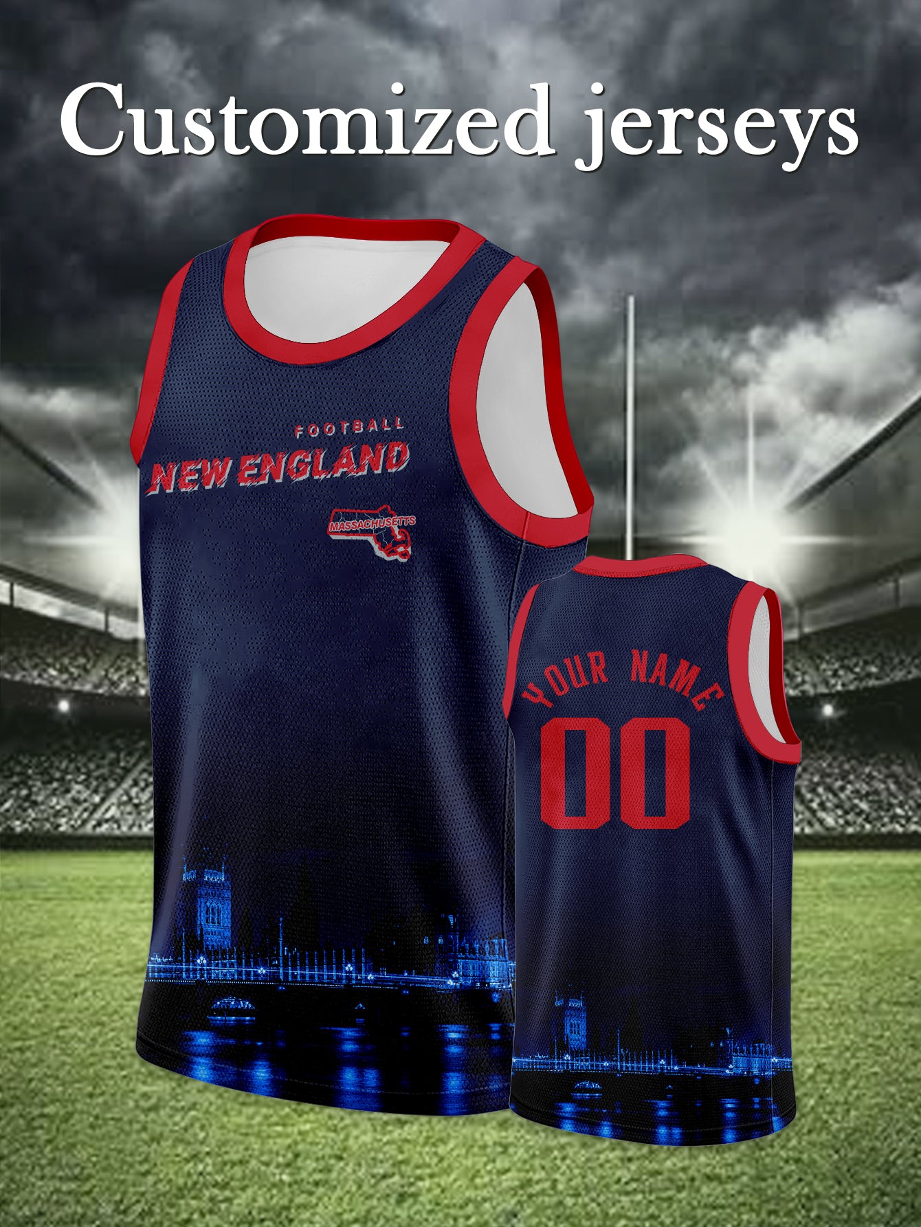 New England Patriots Region Map Basketball Jersey - Name & Number