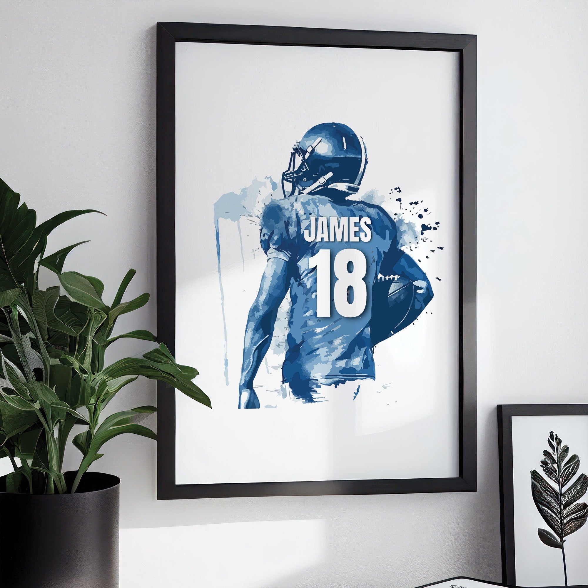 Personalised American Football Poster, Custom Football Jersey Art, Boys Bedroom Decor, Football Gifts, Custom Football Wall Art, Rugby Decor