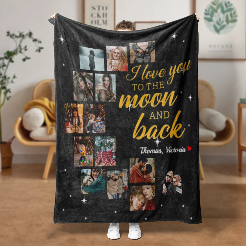 Personalized 14 Photos Blankets Fleece Blanket Gift for Her/Him