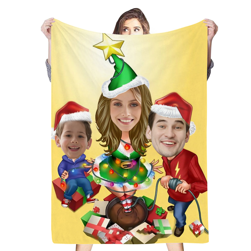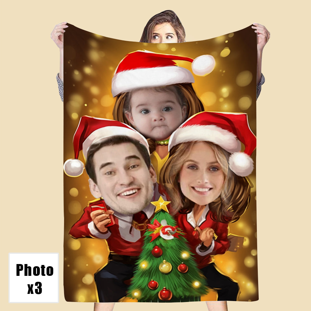 Personalized 3 Photos Blankets Family Christmas Tree Blanket Gifts