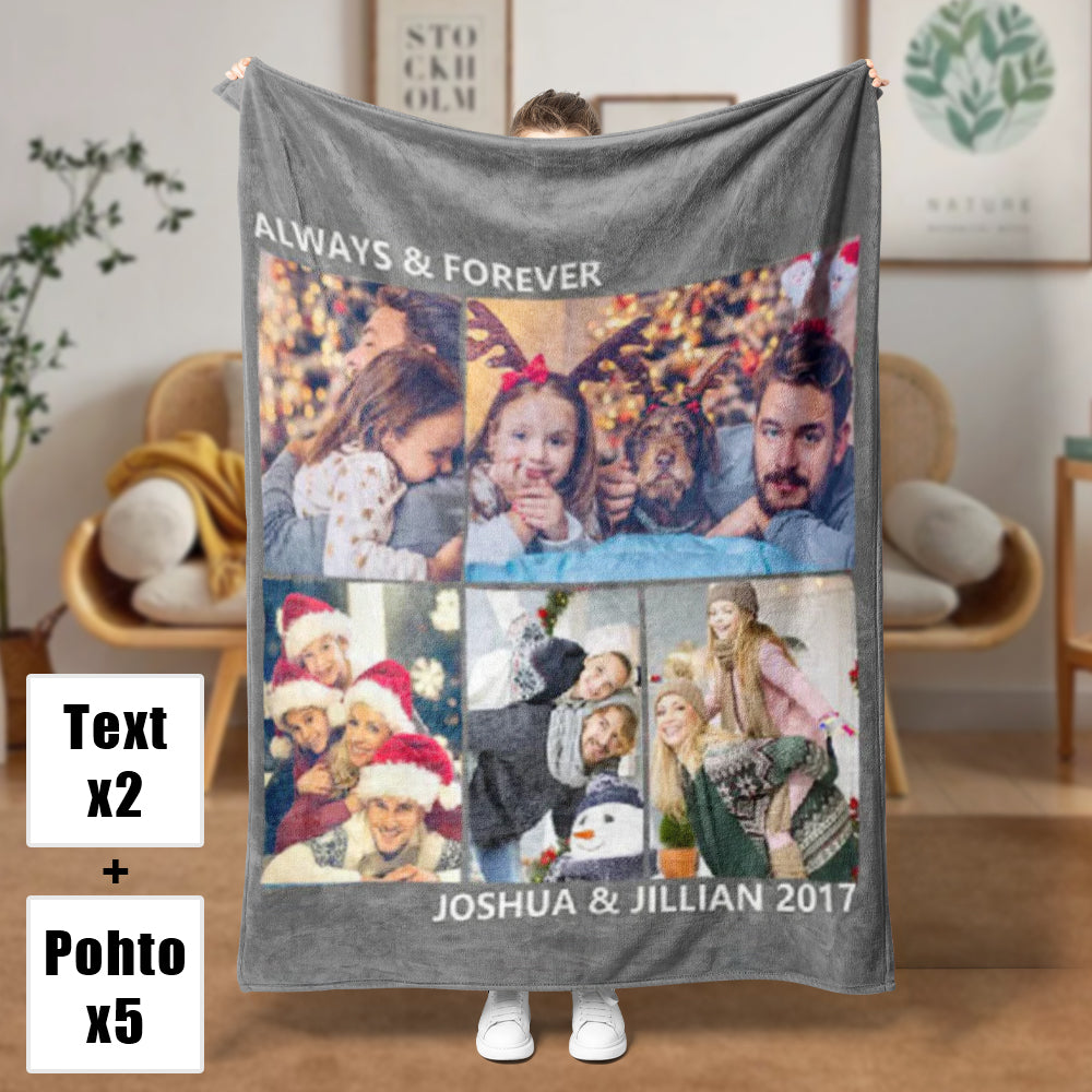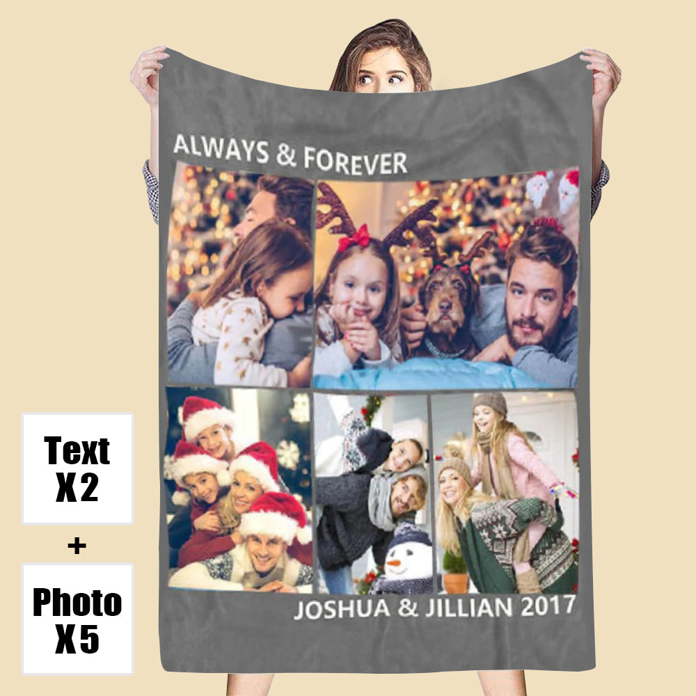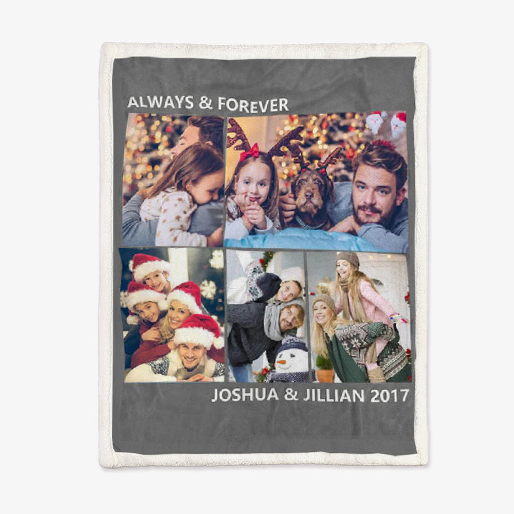 4FunGift® Personalized 5 Photos Blanket Couple Gifts For Him/Her