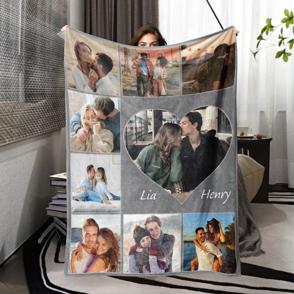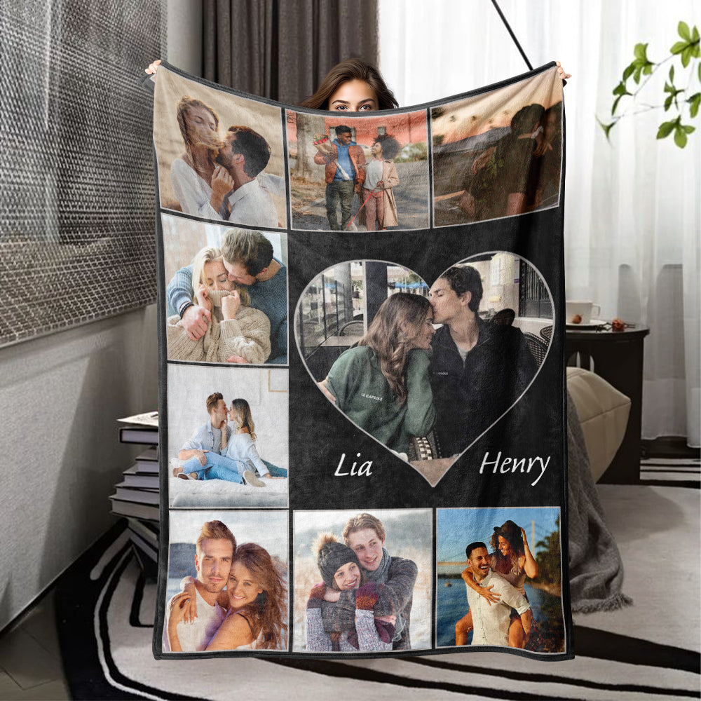 Personalized Couple Photo Blankets Fleece Throw Blankets Custom Blanket with Pictures Gift for Wife/Husband/Girlfriend/Boyfriend Anniversary Gift