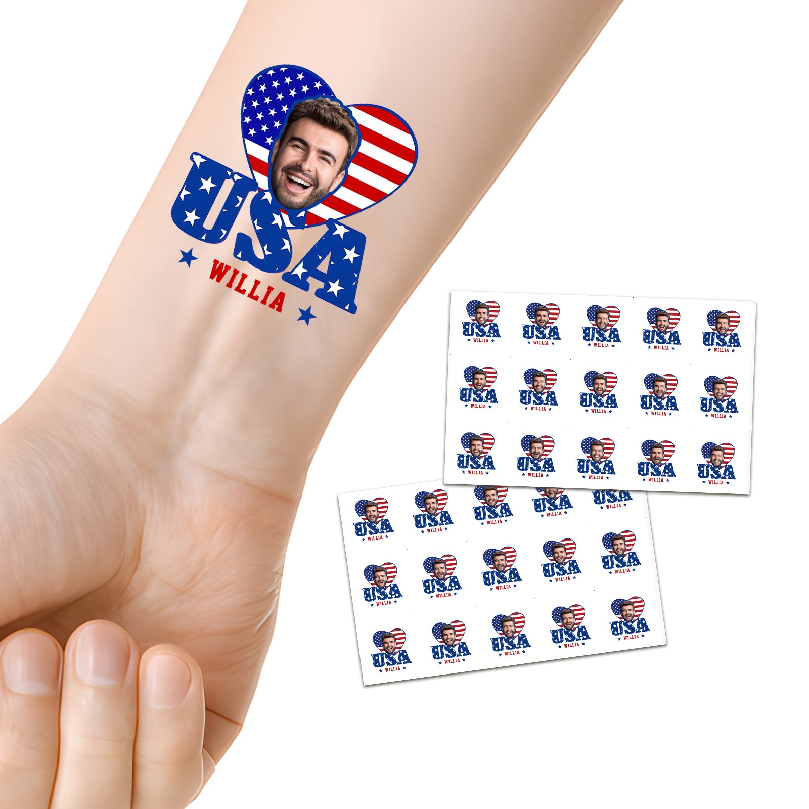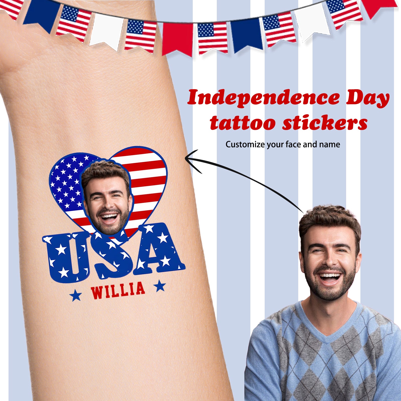 Personalized Custom Face Tattoo Unique 4th July Flag with Your Name