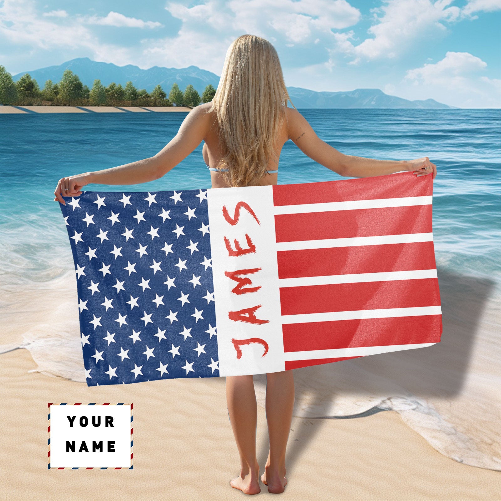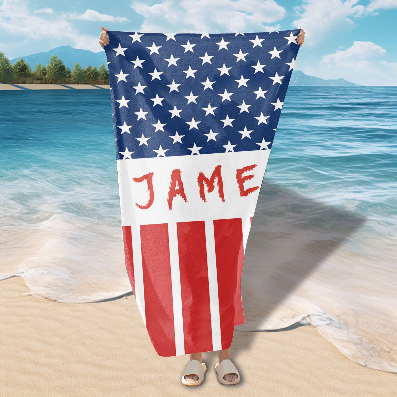 Personalized Custom Name Towel Unique 4th Of July American Flag Blanket