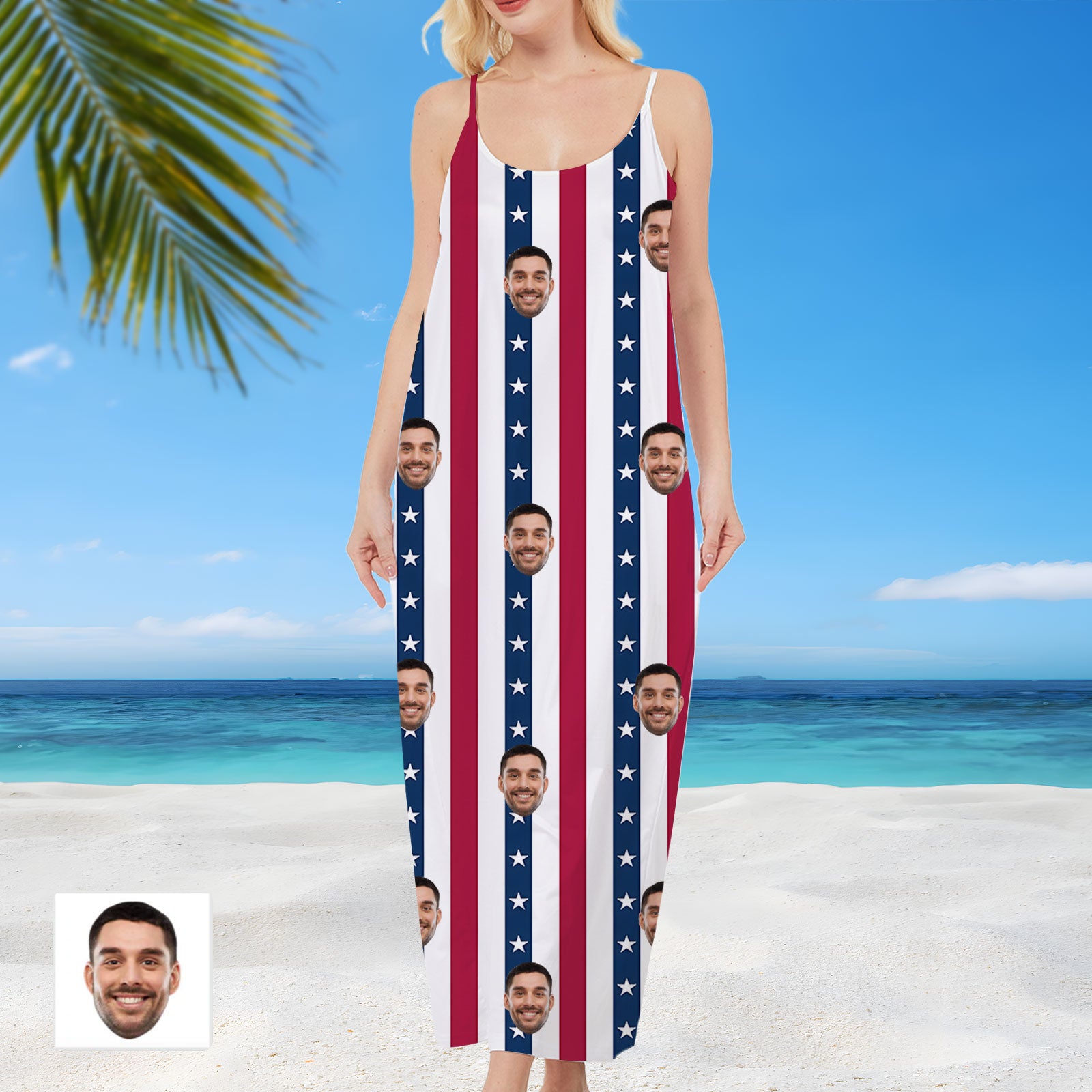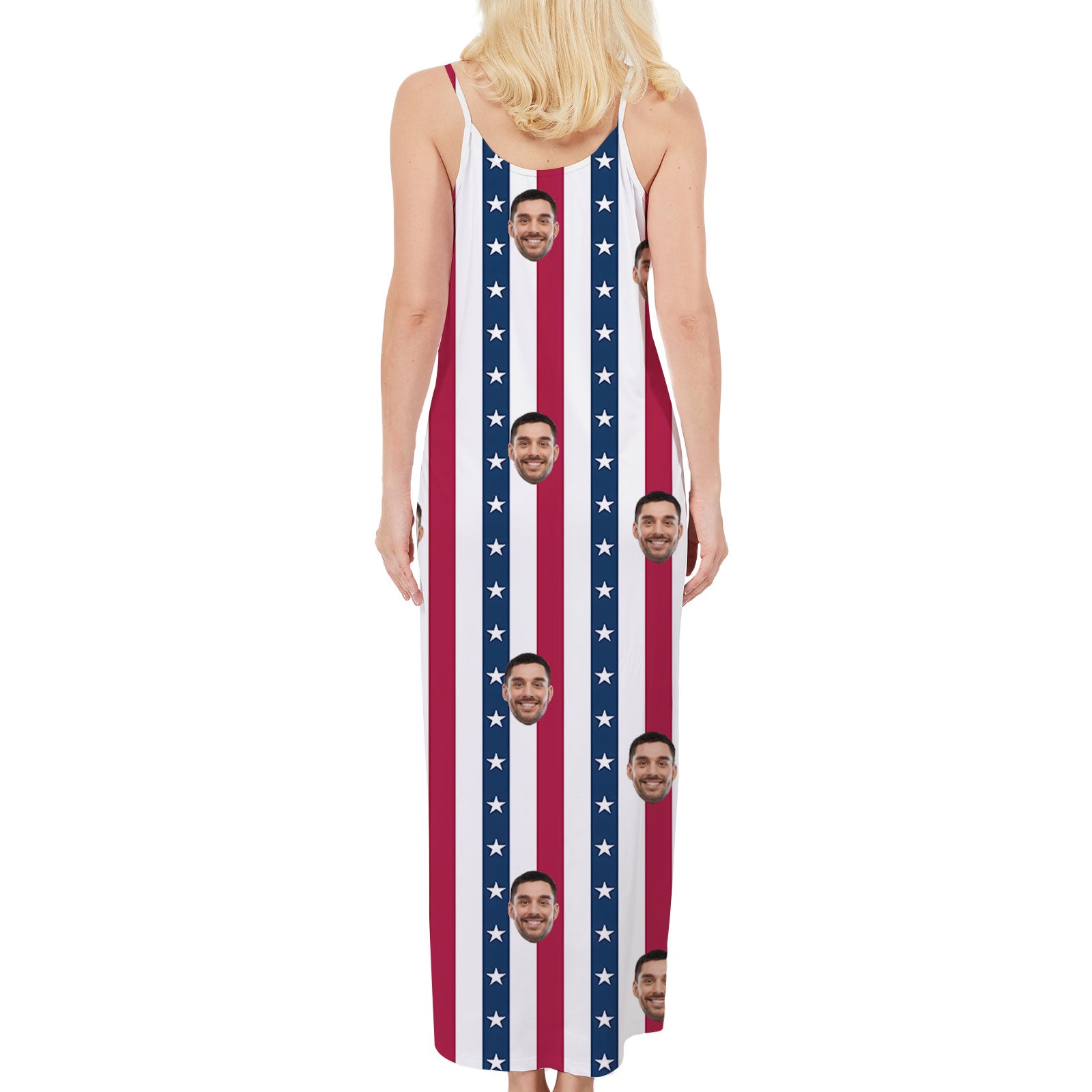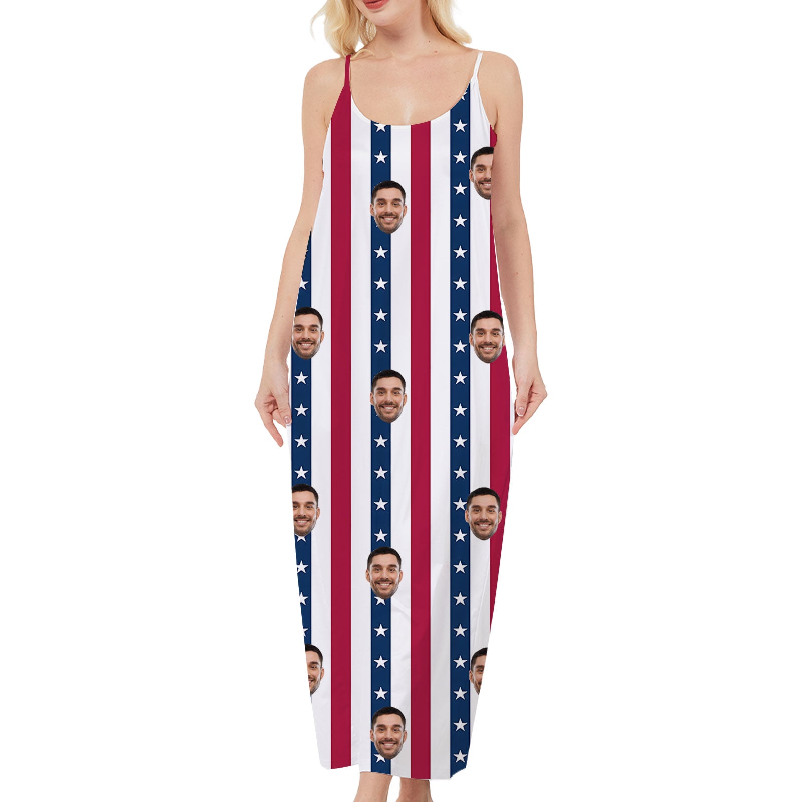 Personalized Face Custom Flag Dress Unique 4th Of July Party Dress