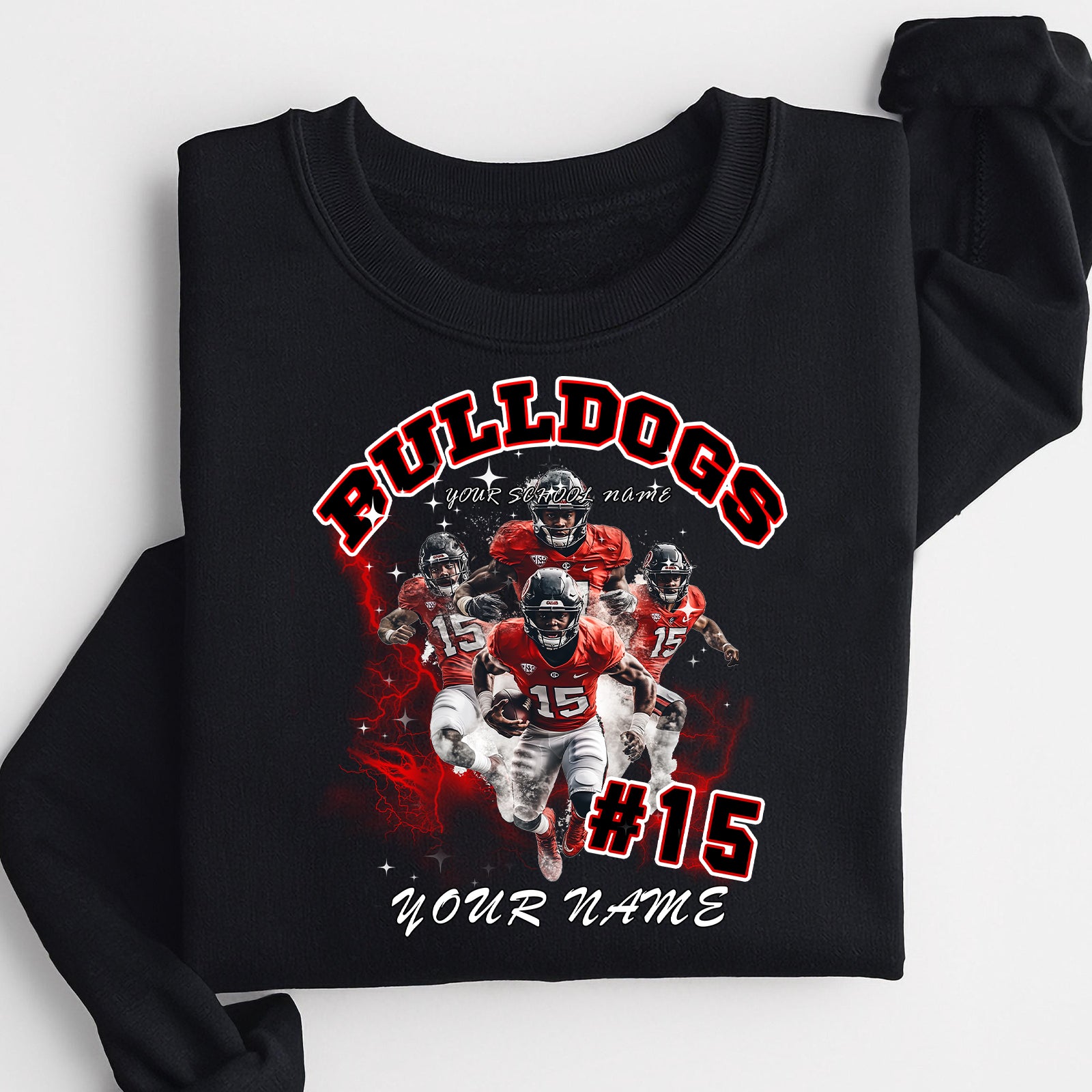 Personalized Football T-Shirt Hoodie Sweatshirt, Georgia Bulldogs Football, Custom Player Name Number, UGA Football Fans Gift