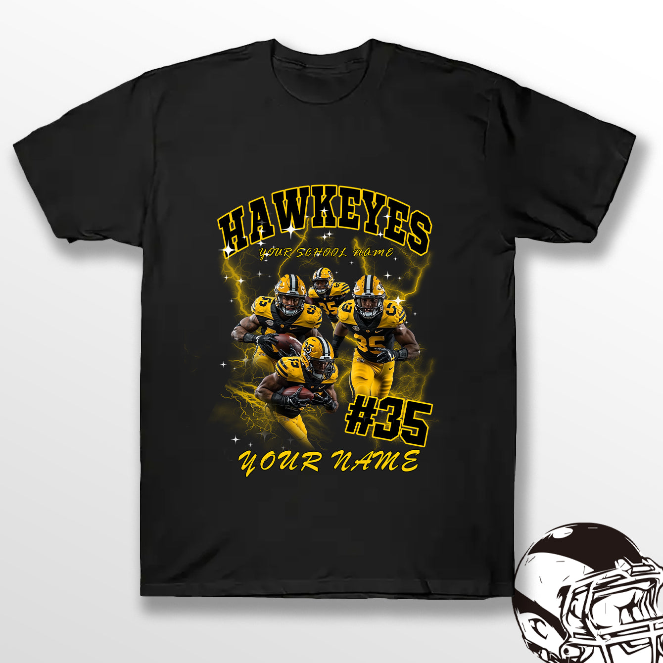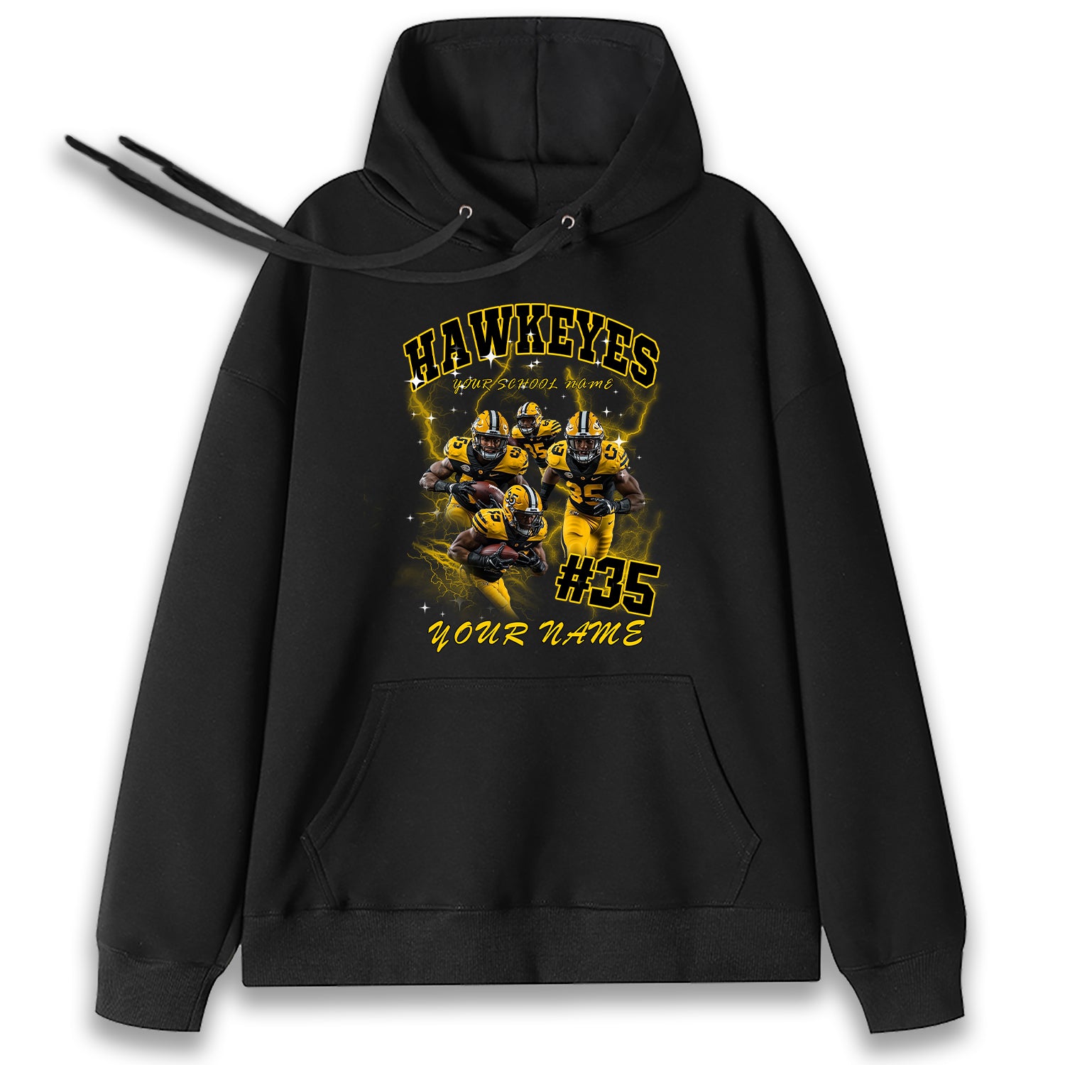 Personalized Football T-Shirt Hoodie Sweatshirt, Iowa Hawkeyes Football, Custom Player Name Number, UI Football Fans Gift