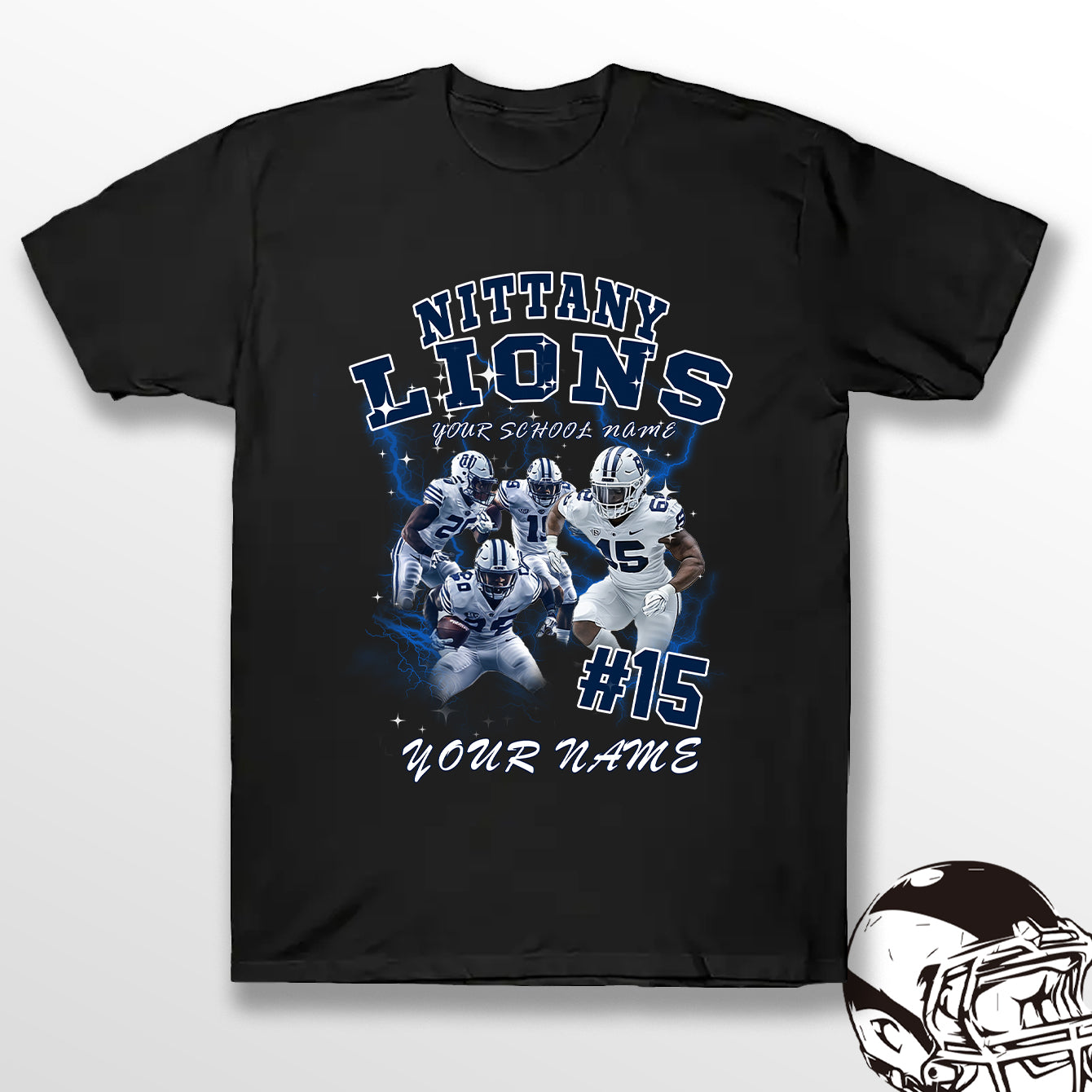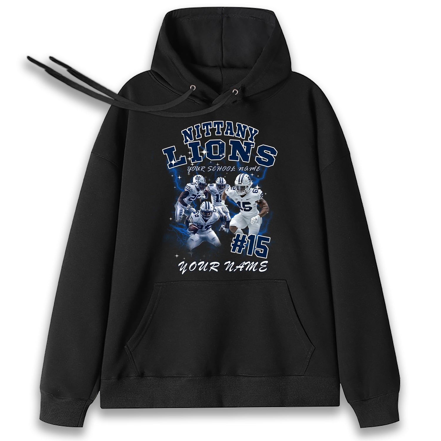 Personalized Football T-Shirt Hoodie Sweatshirt, Penn State Nittany Lions Football, Custom Player Name Number, PSU Football Fans Gift