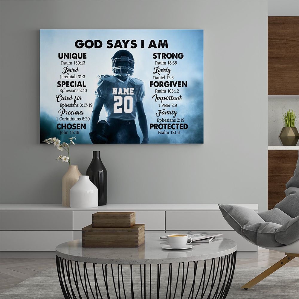 Personalized Gifts, Custom Football Canvas, God Say I Am Canvas, Wall Art For Living Room, Football Gifts For Men, Gifts For Boys