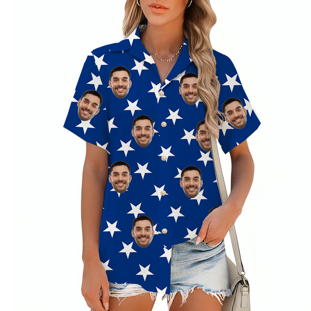 Royal Blue Women's Star Shirt Summer Casual Tops Loose Shirt