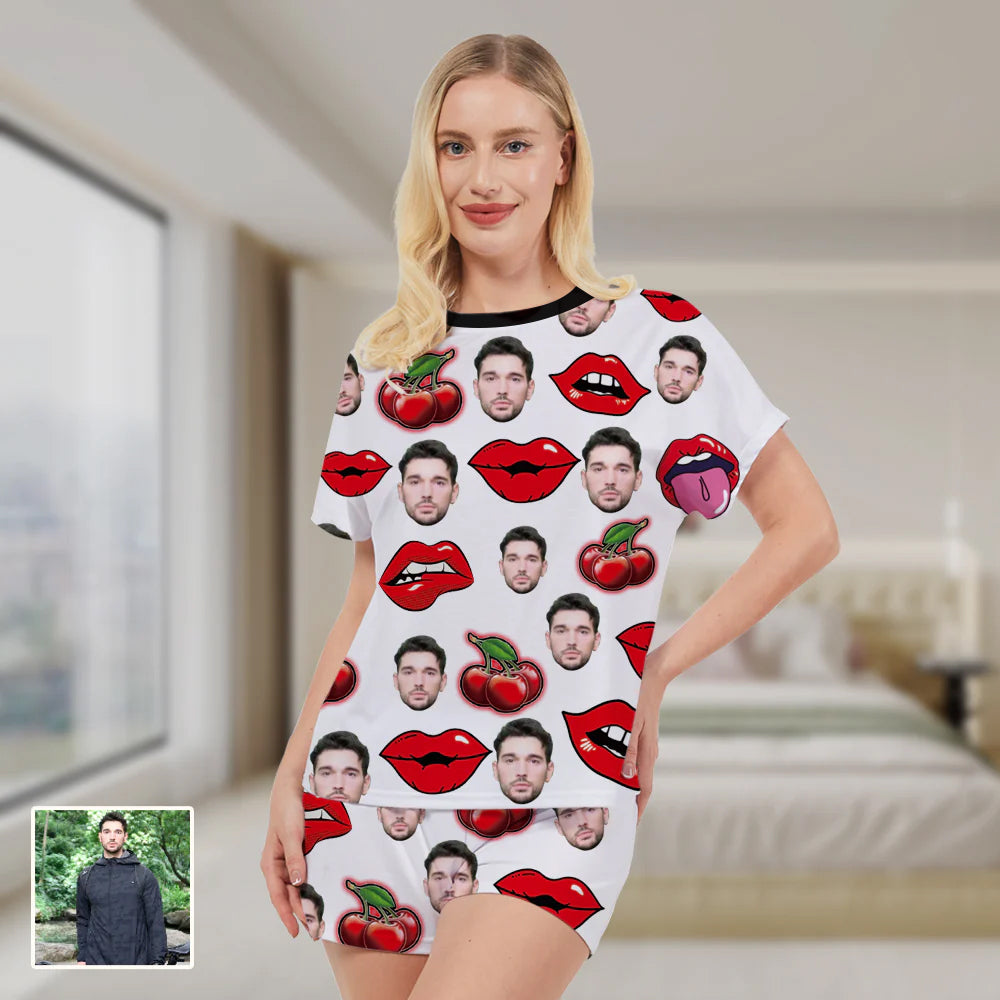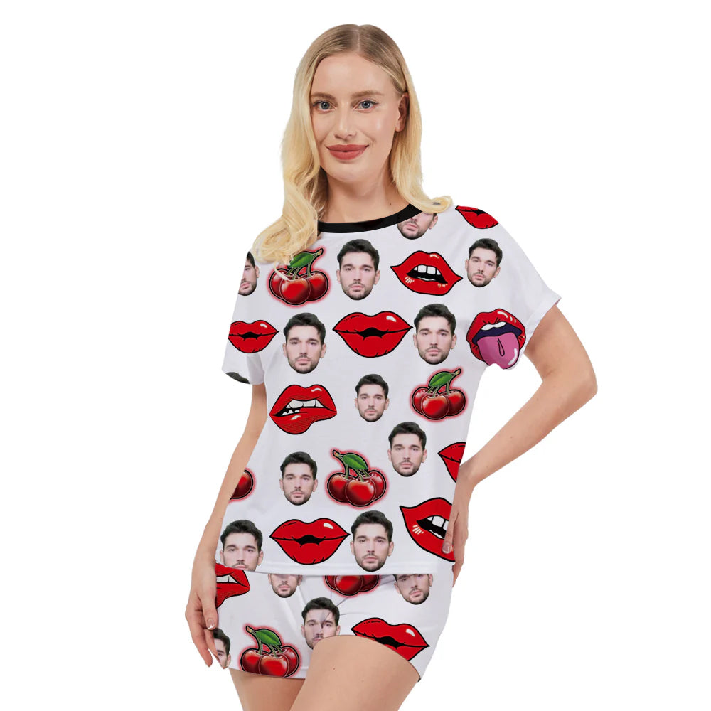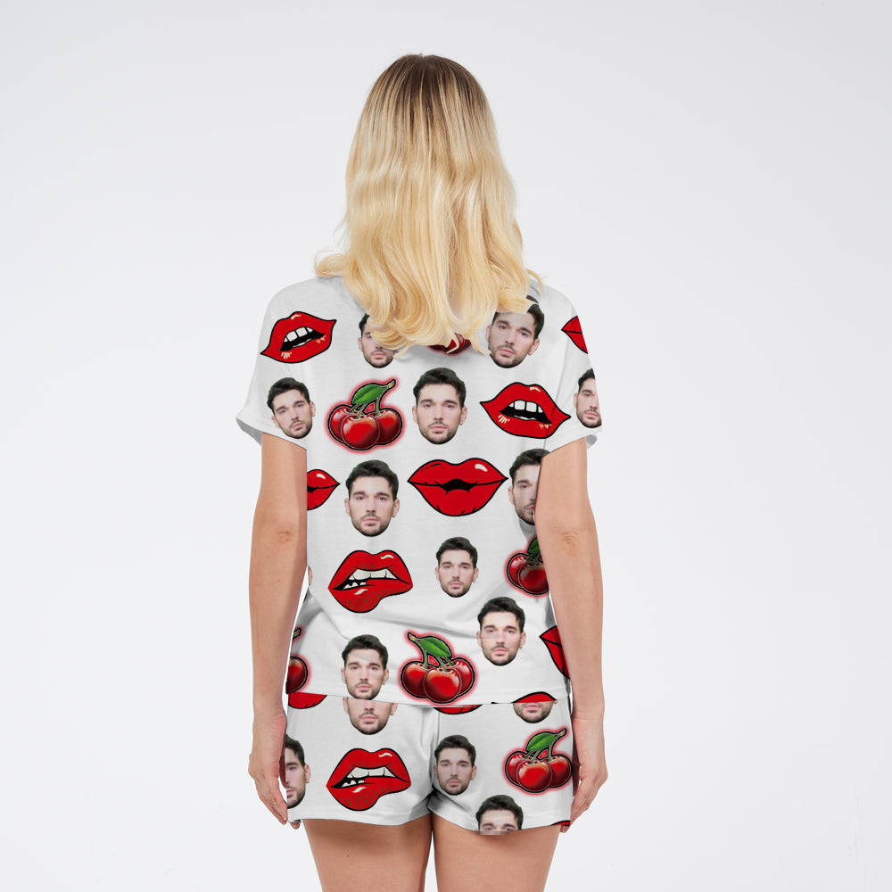 Short Sleeves Shorts Custom Avatar Pajama Set Red Lips Cherry Print