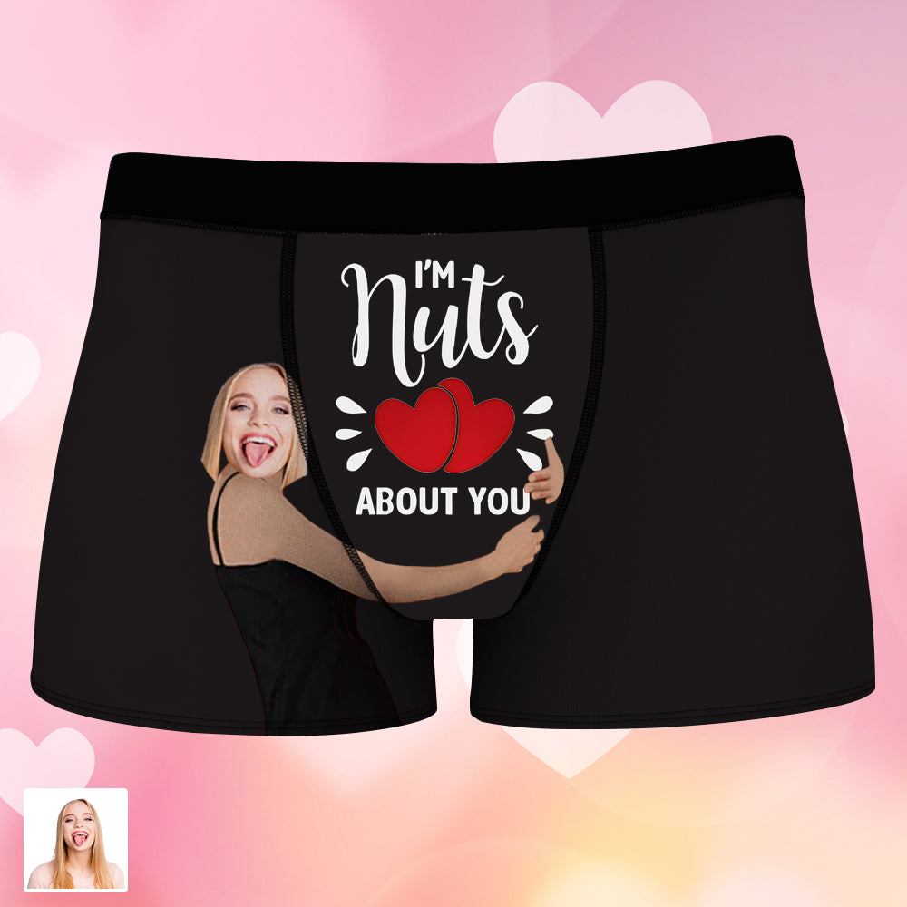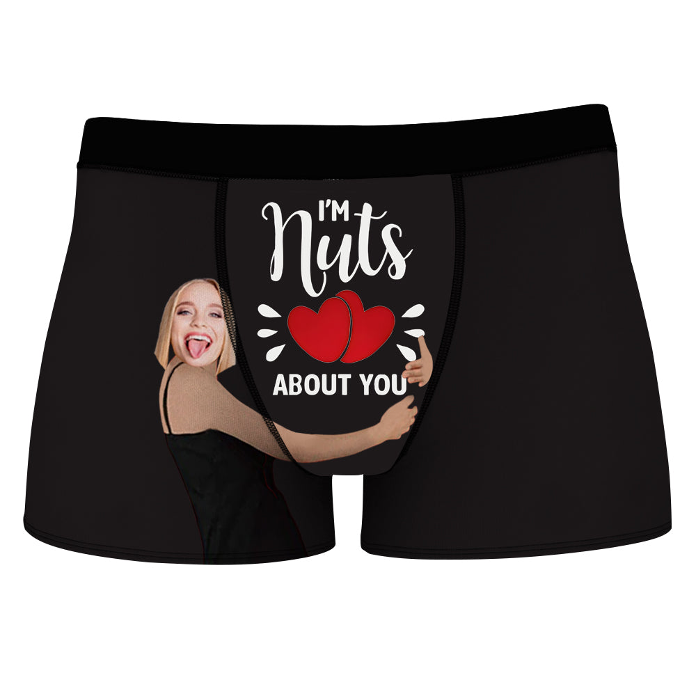 (Tax Included) 4FunGift® Custom Men's Face Underwear Hug Boxer Briefs Gifts I'M NUTS ABOUT YOU