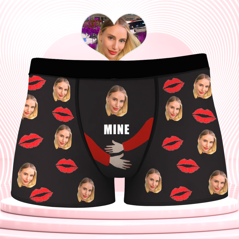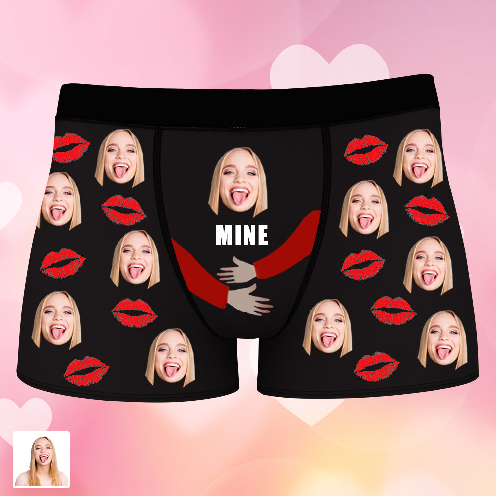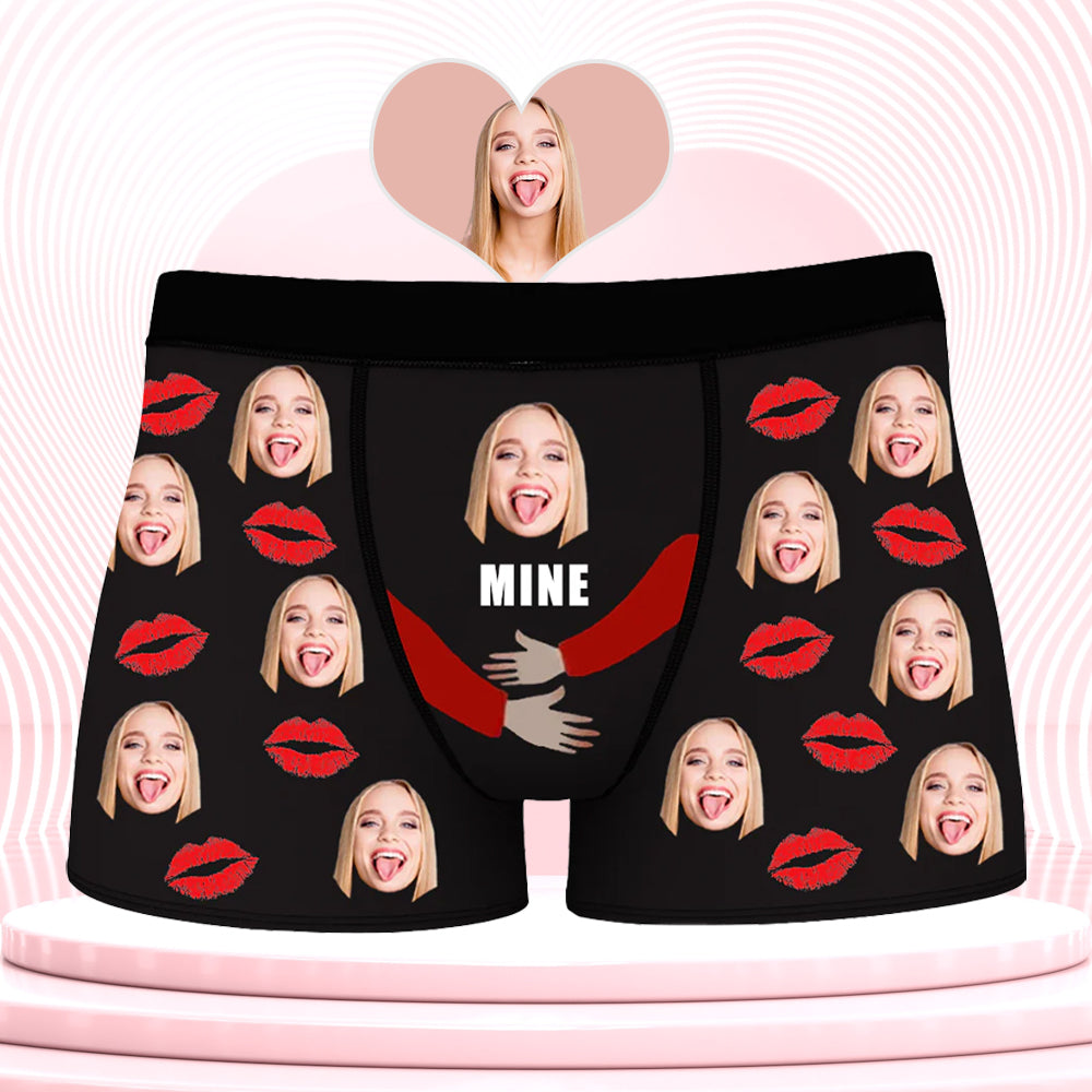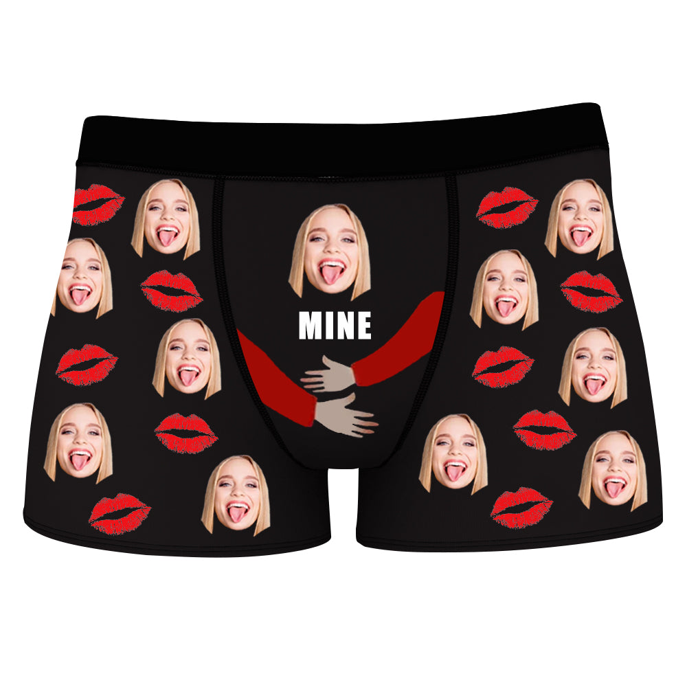 (Tax Included) 4FunGift® Red Lips It's Mine Men's Underwear Customized Face Personalized Men's Gift