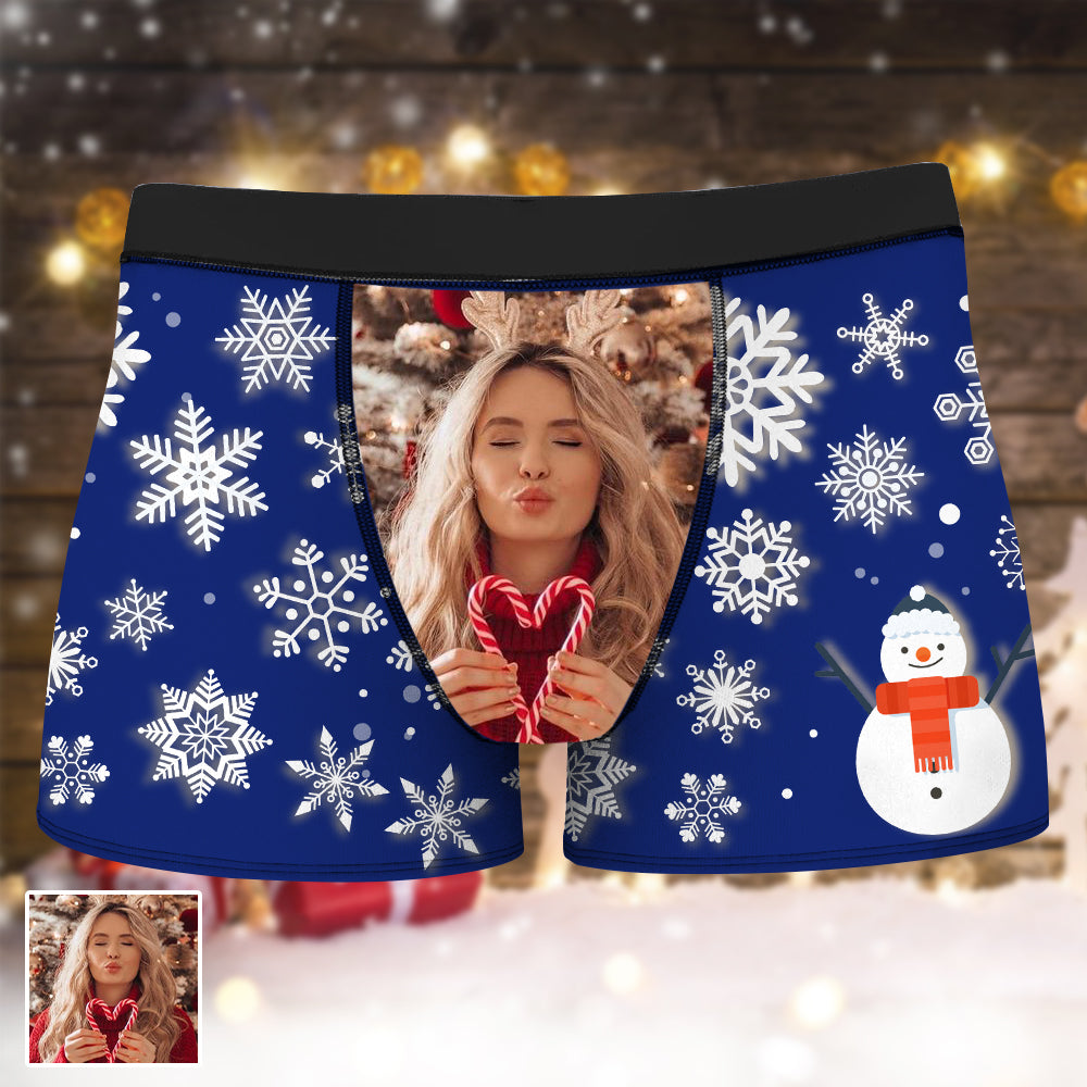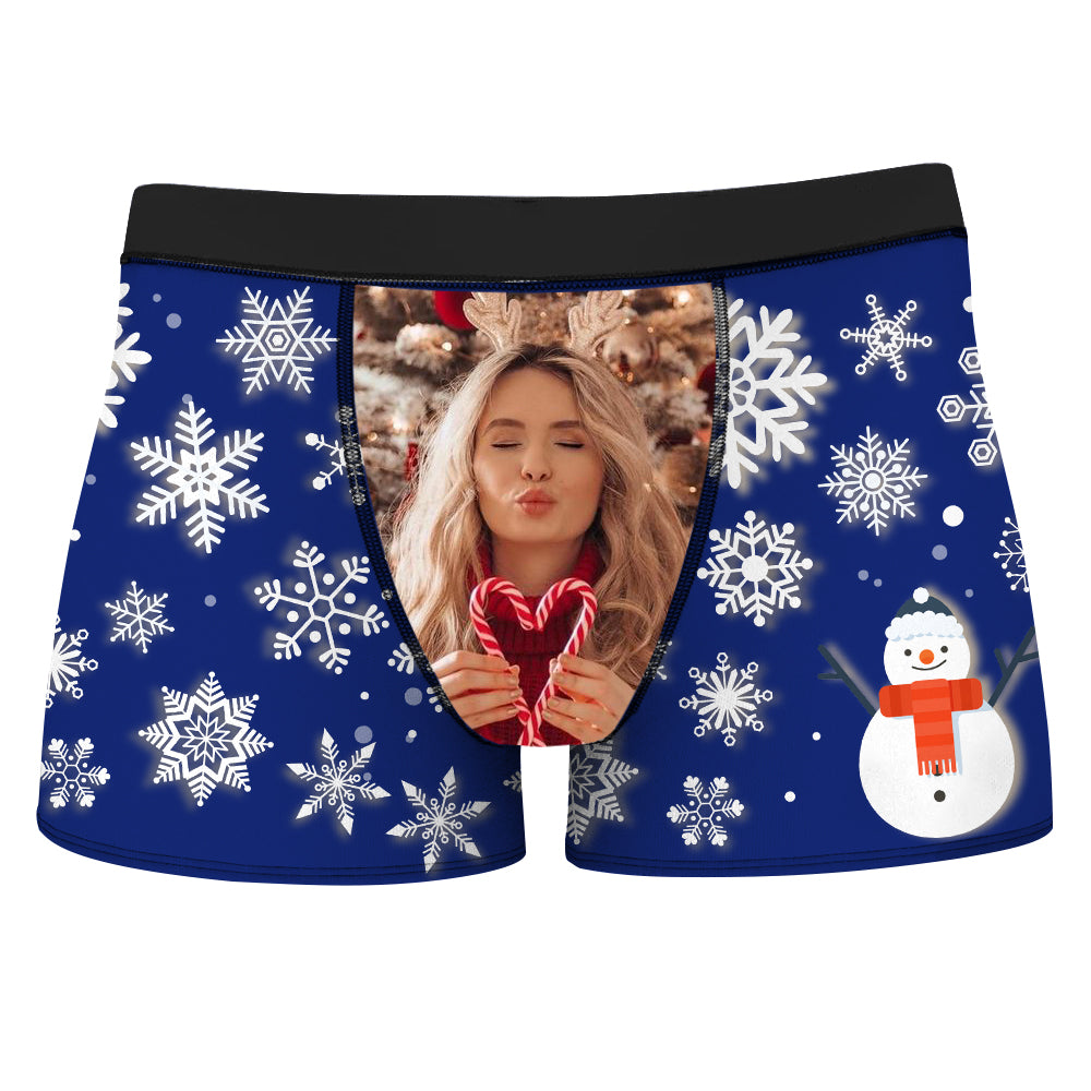 (Tax Included) Blue Christmas Snowflake Snowman Print Custom Face Men's Boxer Briefs