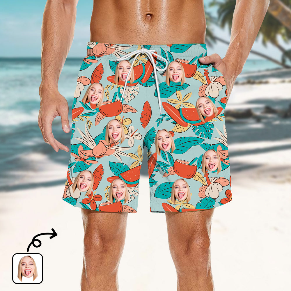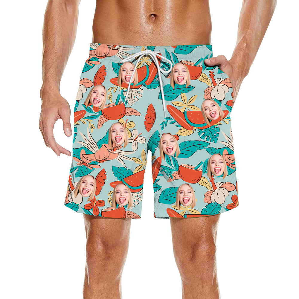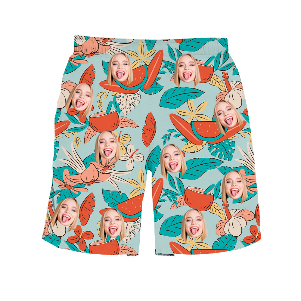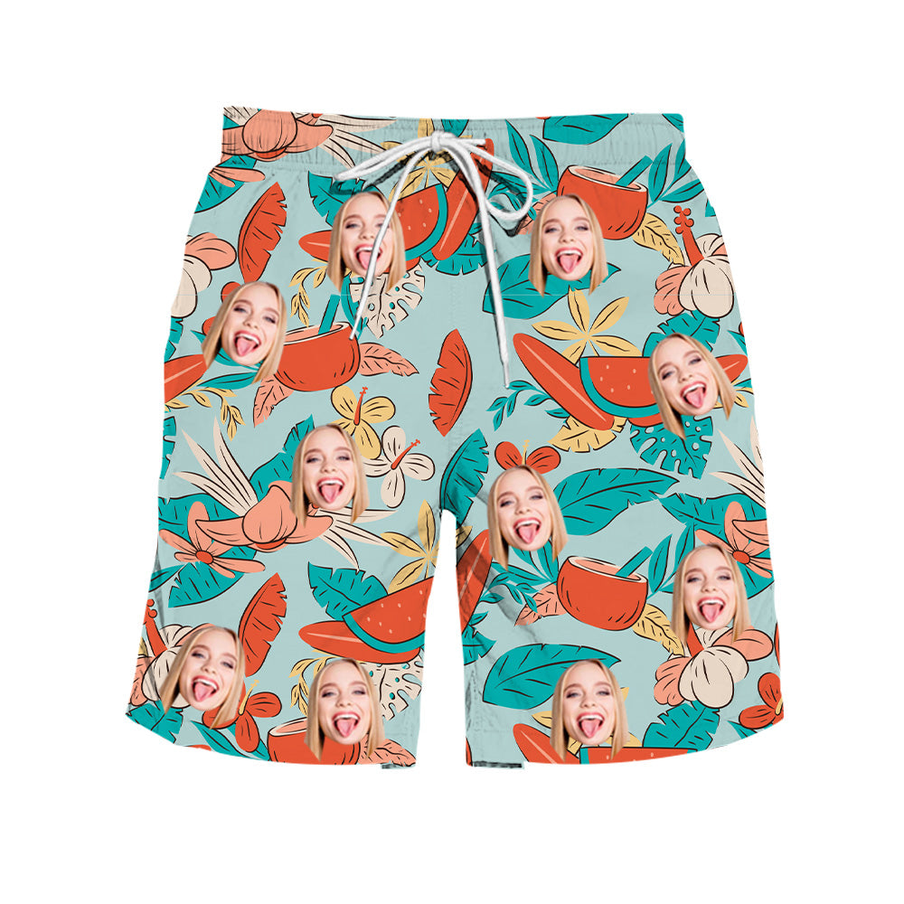 - Either to get a smile out of you or to use every day, you are going to love our custom beach shorts with photo. They are made with the best material and super soft you will enjoy wearing. Customize your beach shorts with your favorite photo face and make the perfect gift! Make the perfect beach shorts for family and friends that they will never forget about.