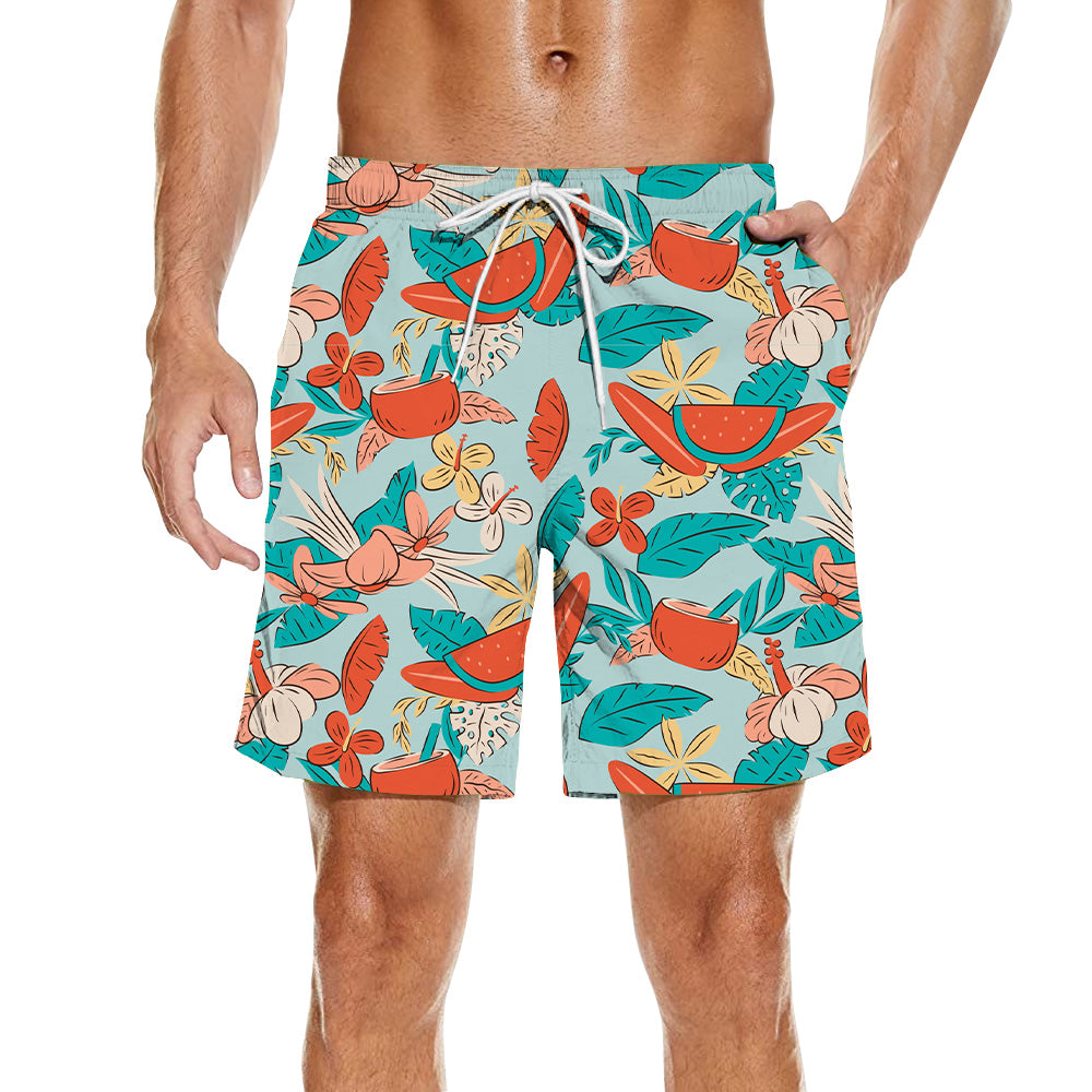 (Tax Included) Bold Custom Face Beach Shorts With Watermelon & Coconut Juice Motifs