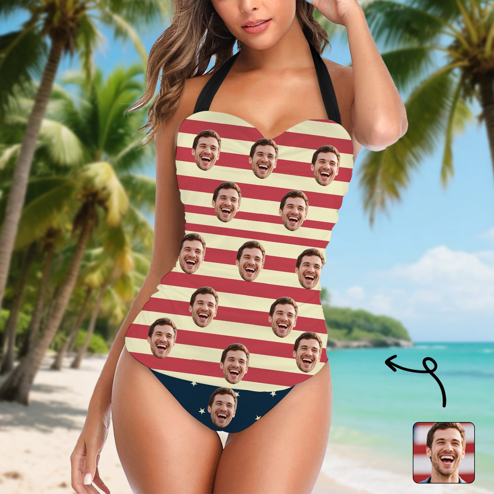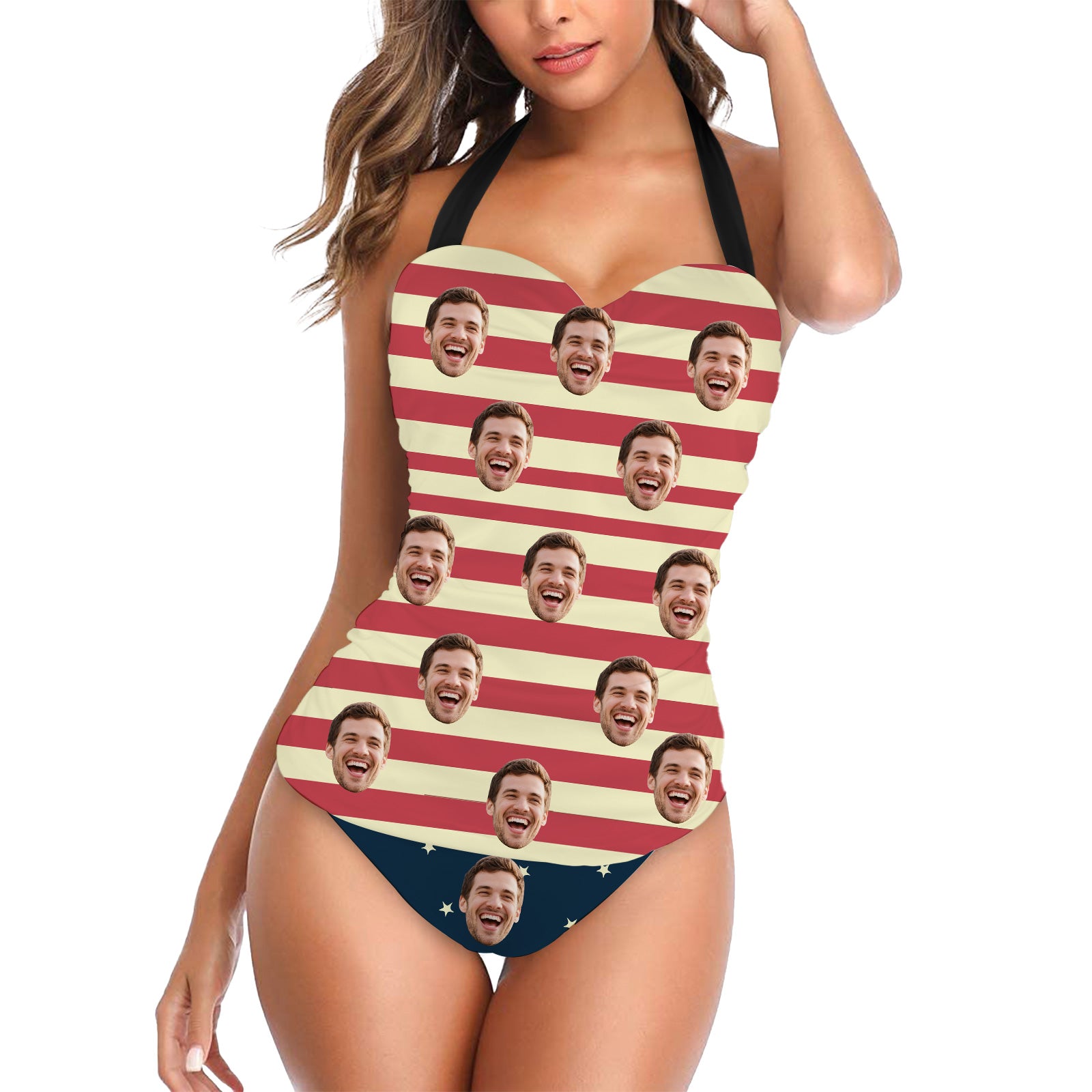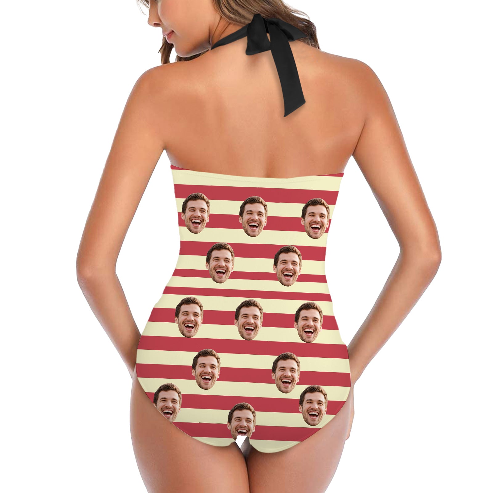 (Tax Included) Bold Custom Face Red & Yellow Striped Swimsuit Design