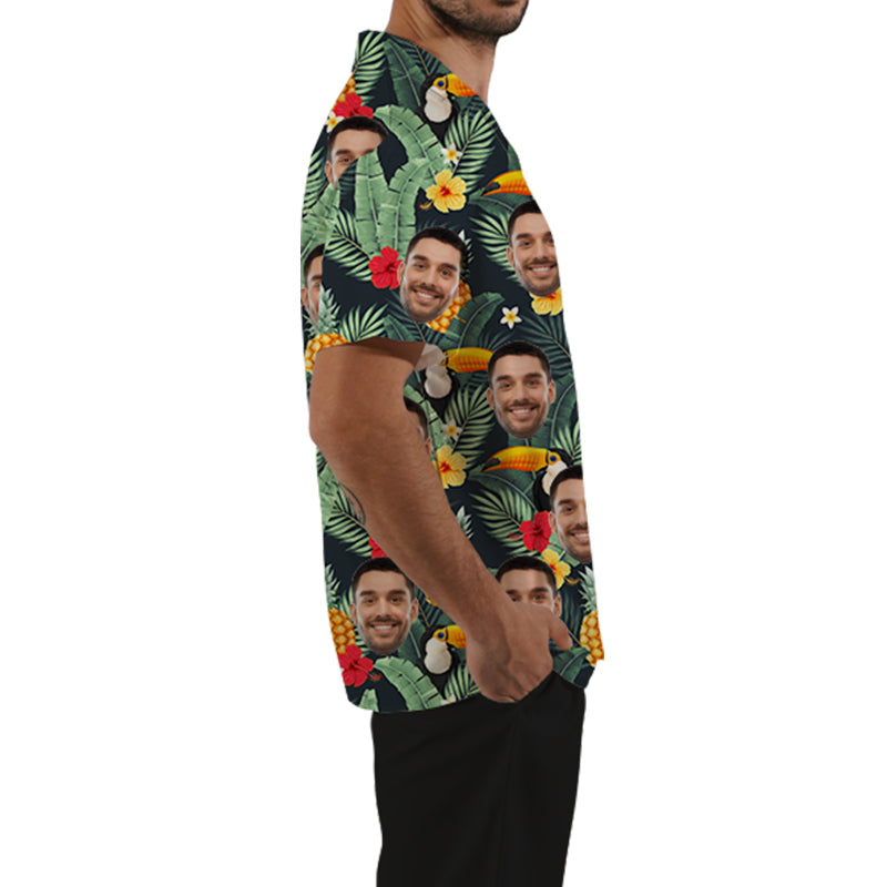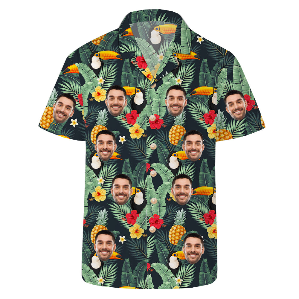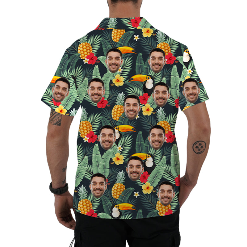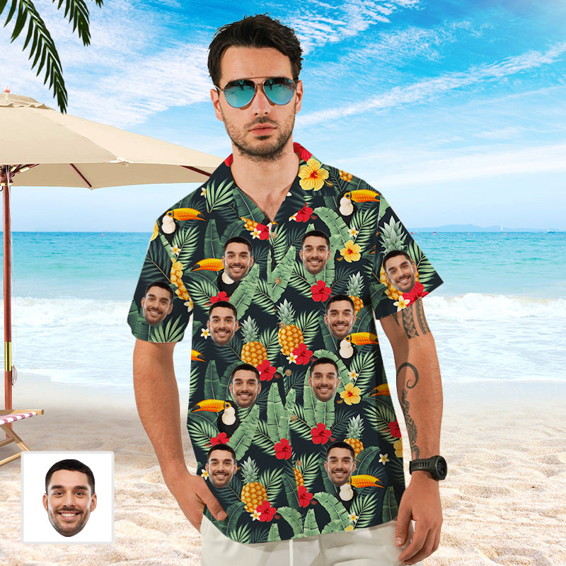 (Tax Included) Casual Mens Tropical Hawaiian Shirt Vibrant Floral Pineapple Print Shirt Beach Party Outfit Customized Face