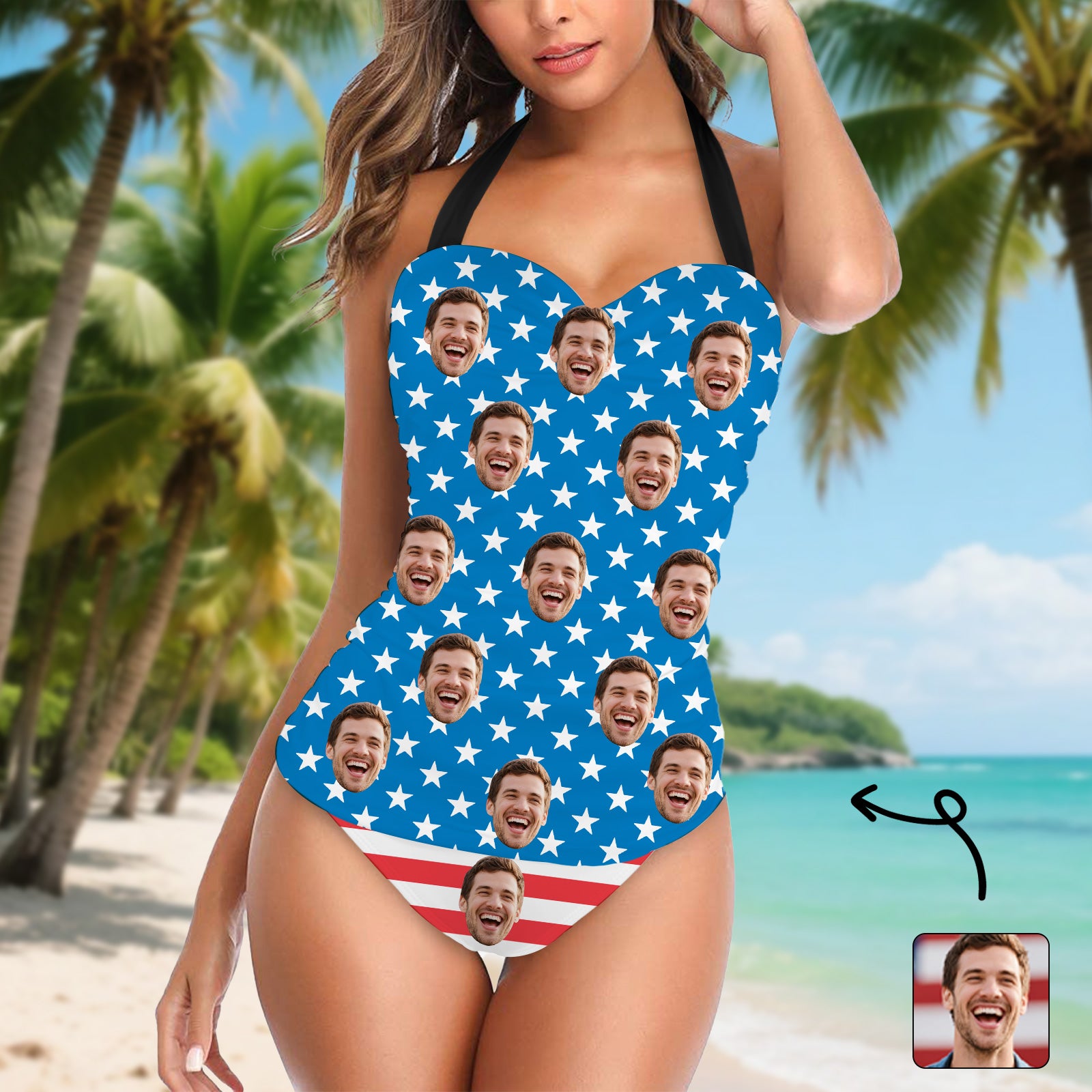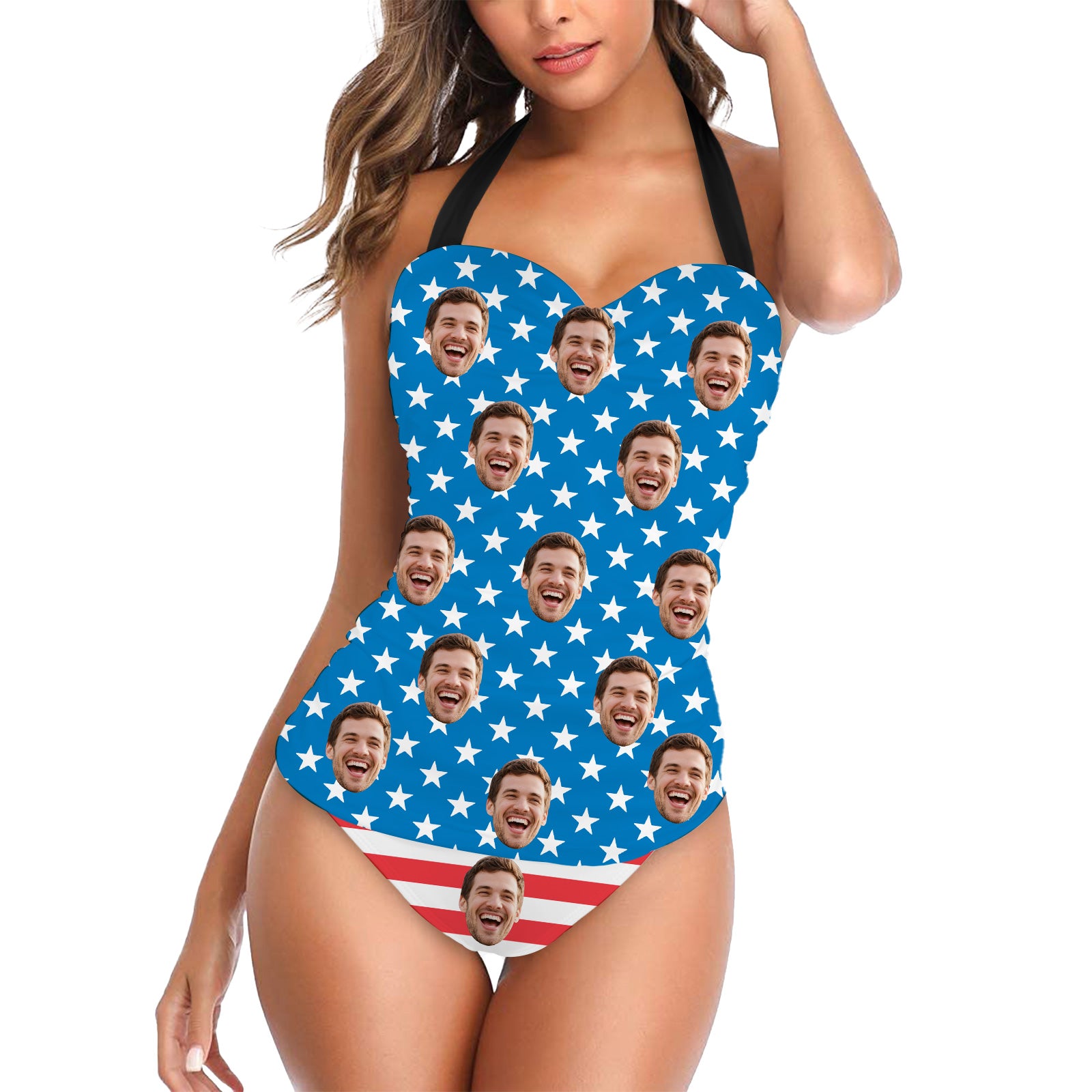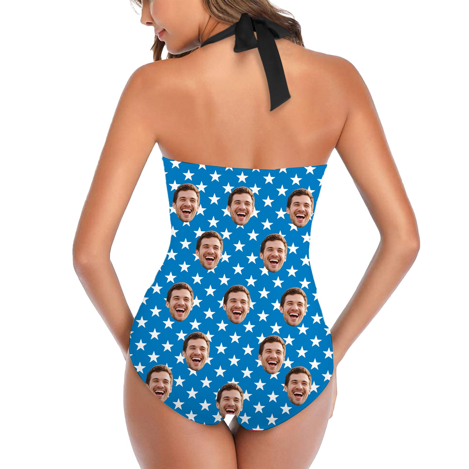 (Tax Included) Classic Custom Face Blue Star Swimsuit For Summer Celebrations