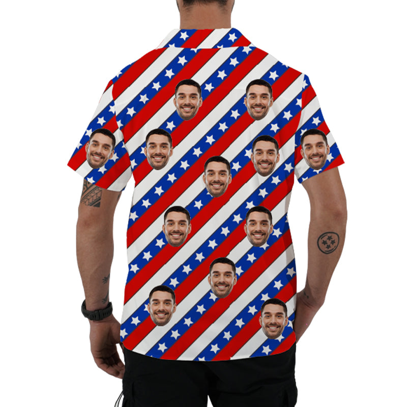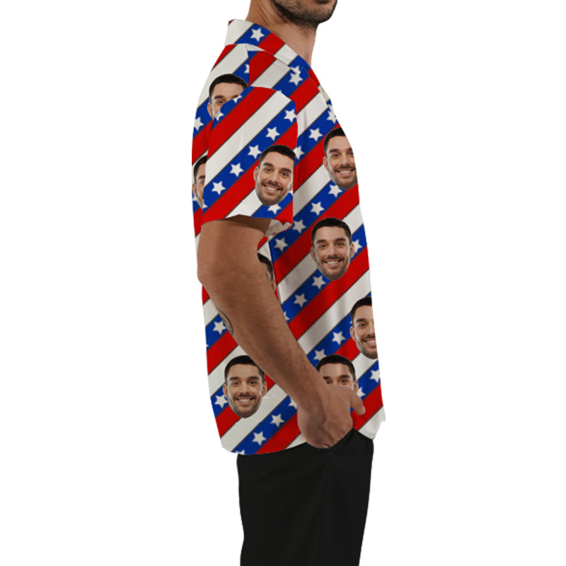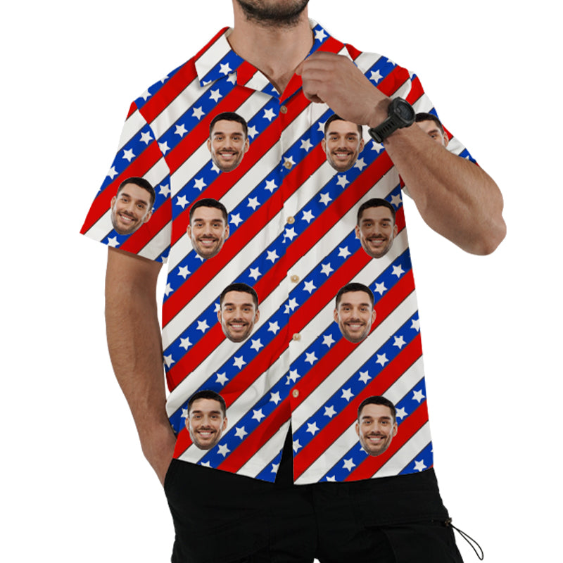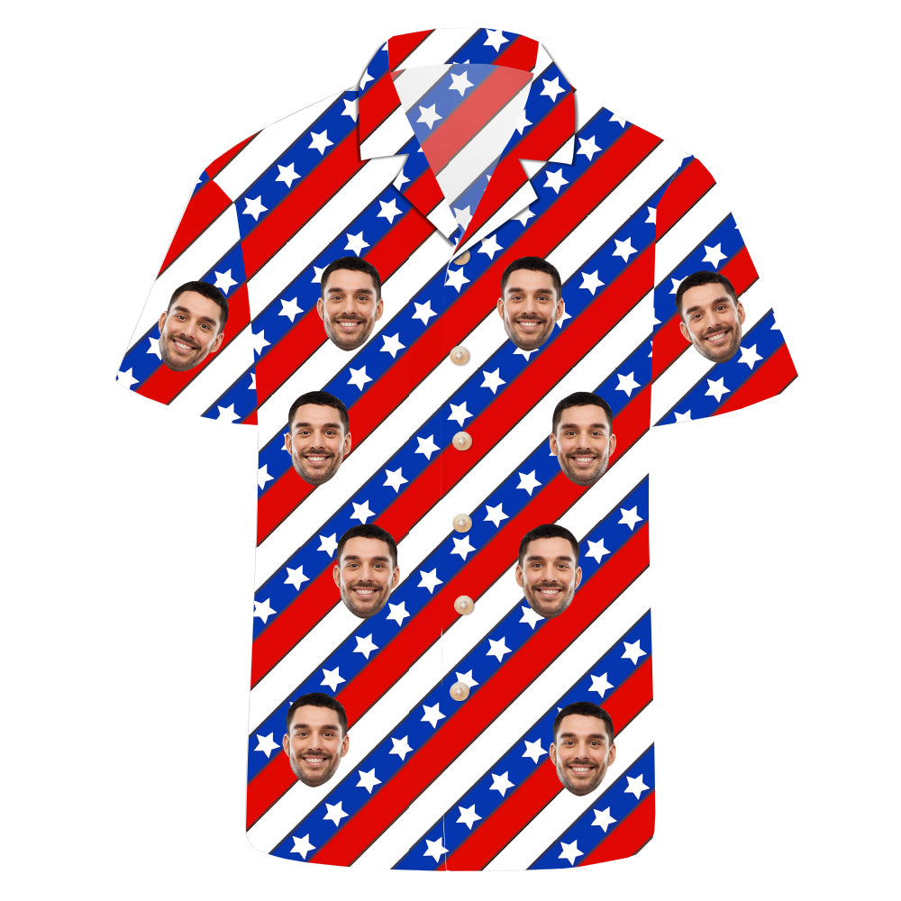(Tax Included) Custom 4th July Hawaiian Shirt With Face - Patriotic Personalized Design