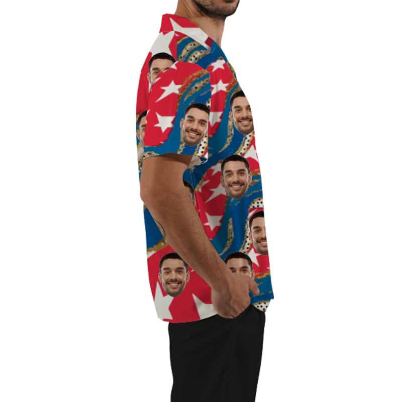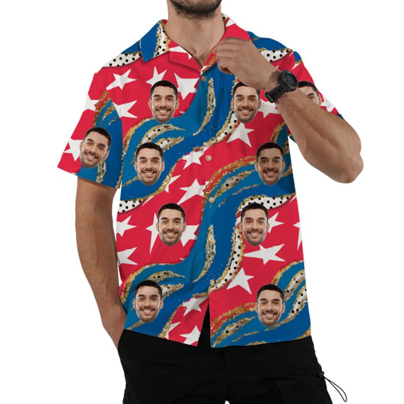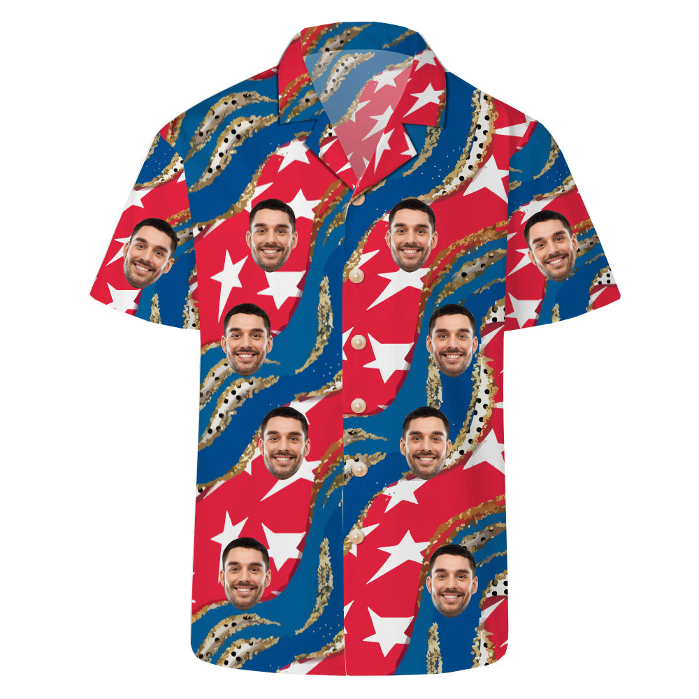 (Tax Included) Custom 4th of July Hawaiian Shirts Personalized Face and USA Designs Unique Holiday Gifts
