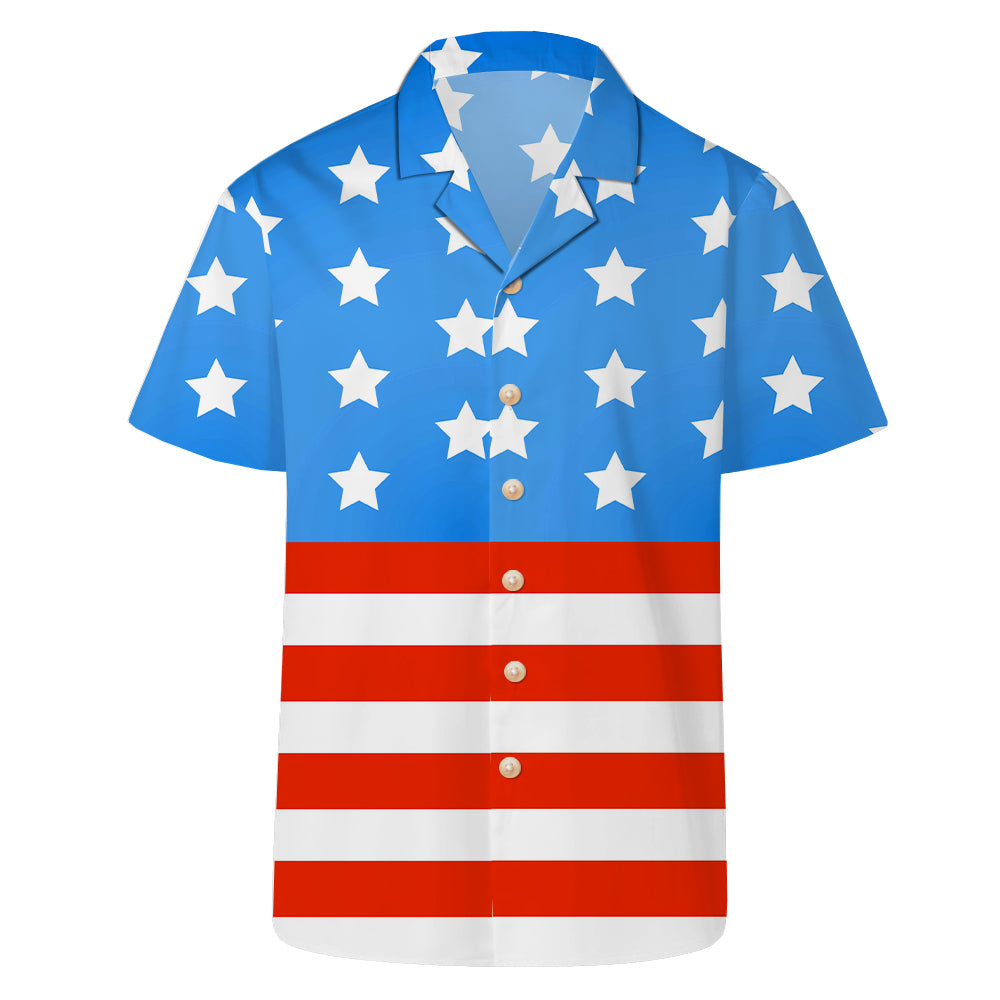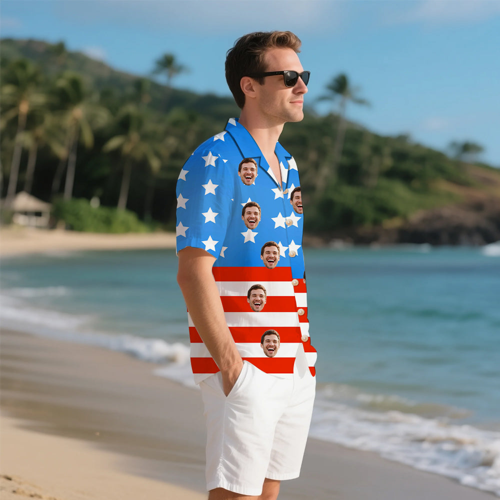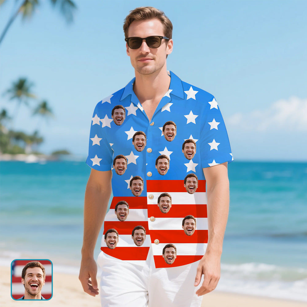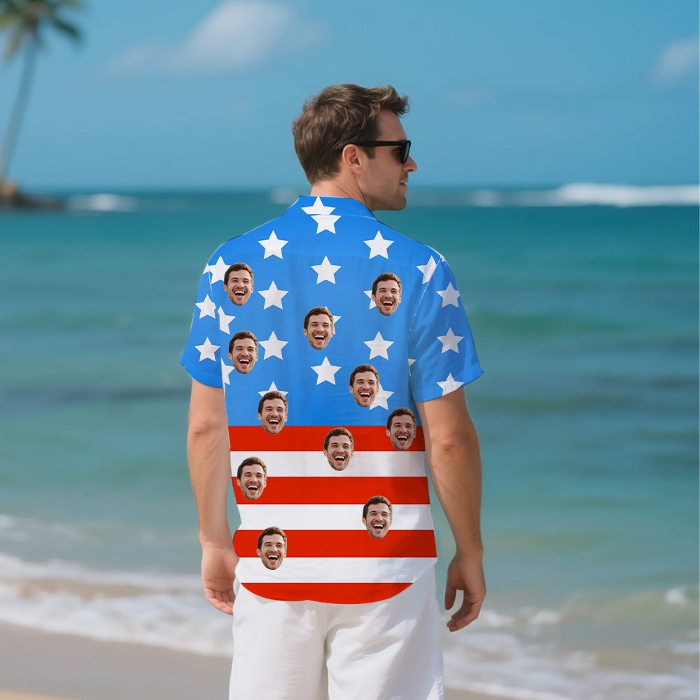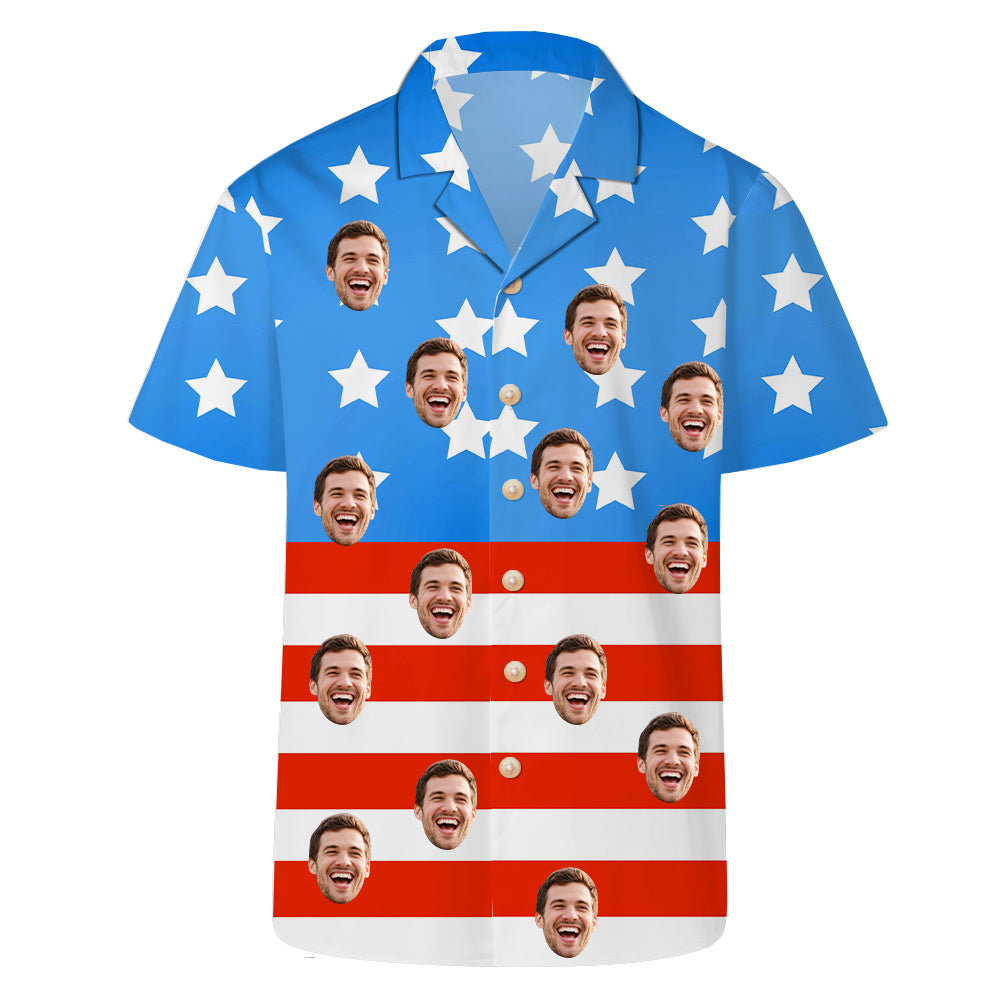 (Tax Included) Custom Face American Flag Aloha Shirt - Stars & Stripes With Portrait Print
