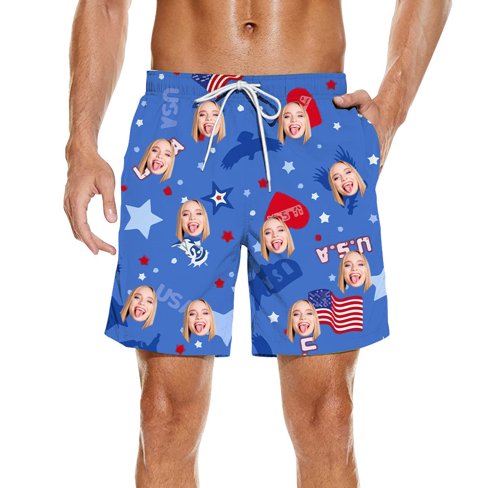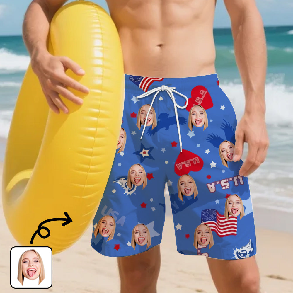 (Tax Included) Custom Face Americana Beach Shorts - Trendy Portrait Print For Casual Outings