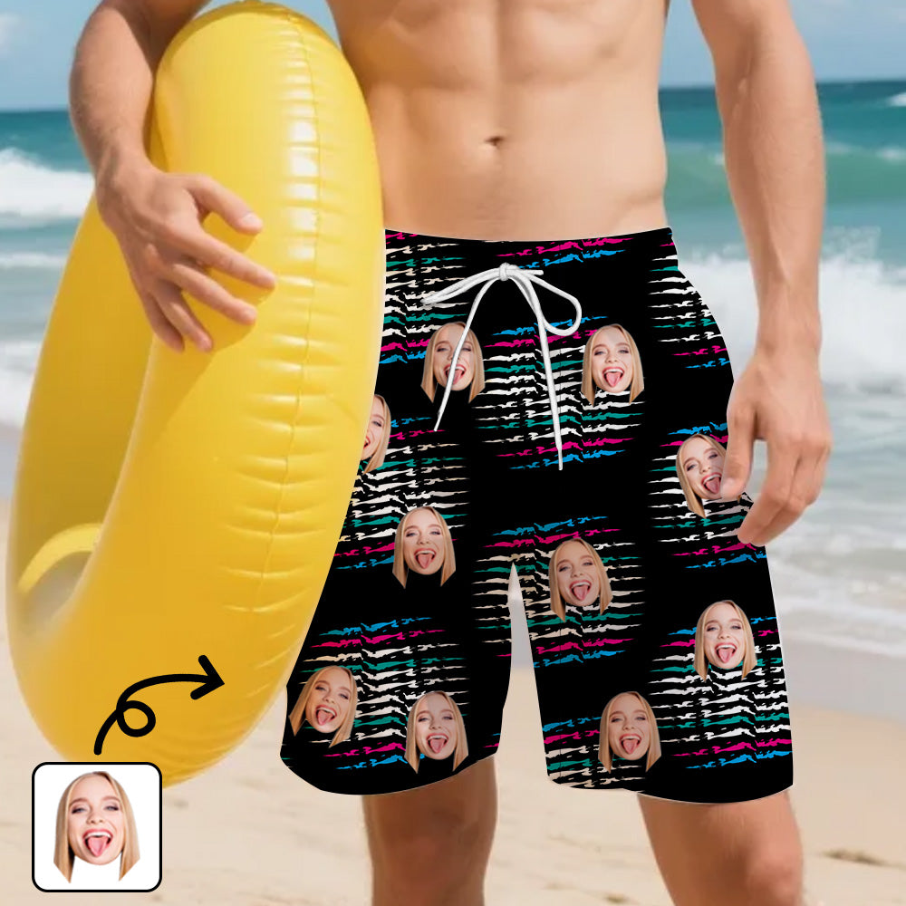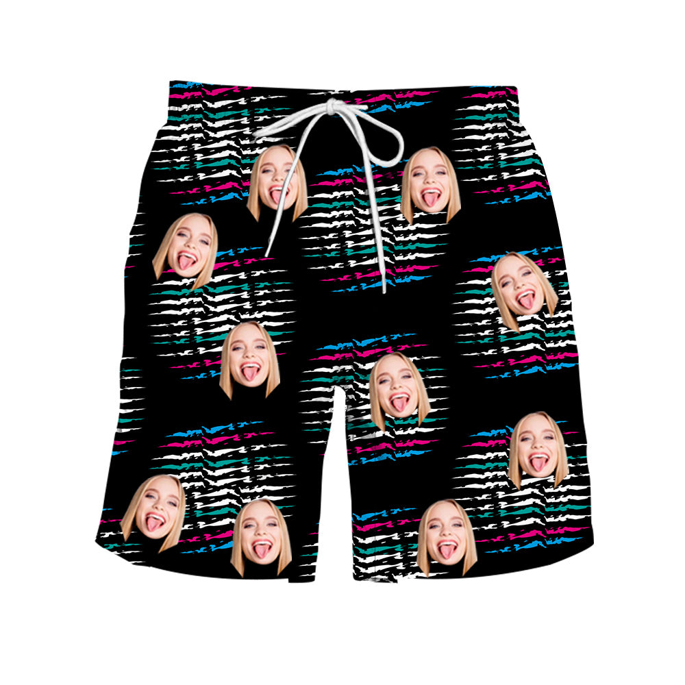 - Either to get a smile out of you or to use every day, you are going to love our custom beach shorts with photo. They are made with the best material and super soft you will enjoy wearing. Customize your beach shorts with your favorite photo face and make the perfect gift! Make the perfect beach shorts for family and friends that they will never forget about.