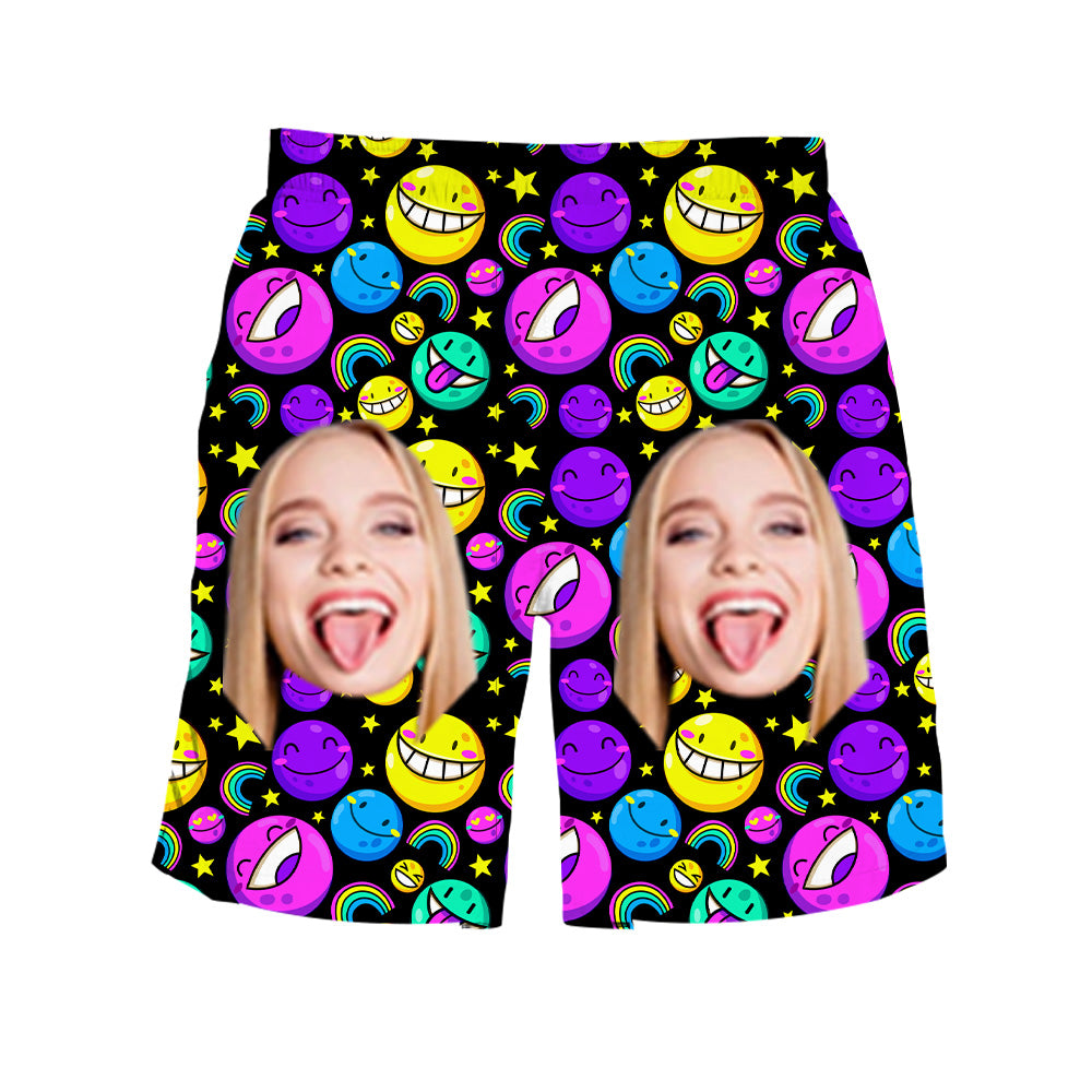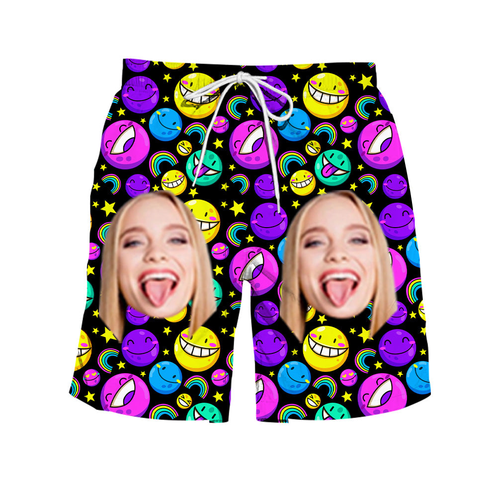 - Either to get a smile out of you or to use every day, you are going to love our custom beach shorts with photo. They are made with the best material and super soft you will enjoy wearing. Customize your beach shorts with your favorite photo face and make the perfect gift! Make the perfect beach shorts for family and friends that they will never forget about.