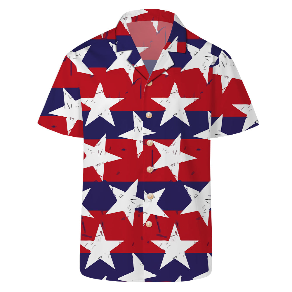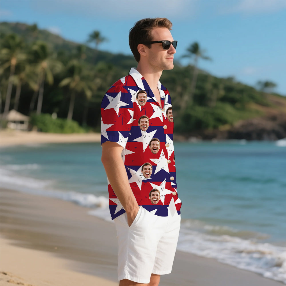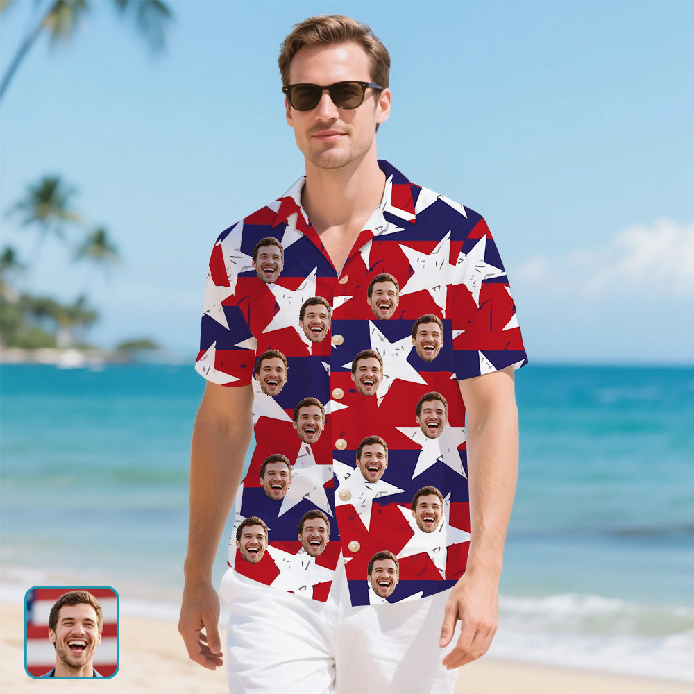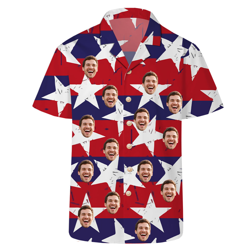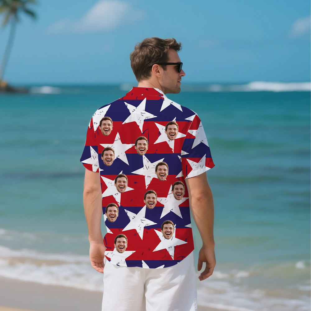 (Tax Included) Custom Face Classic Star & Stripe Motif Hawaiian Shirt For Holiday Barbecues