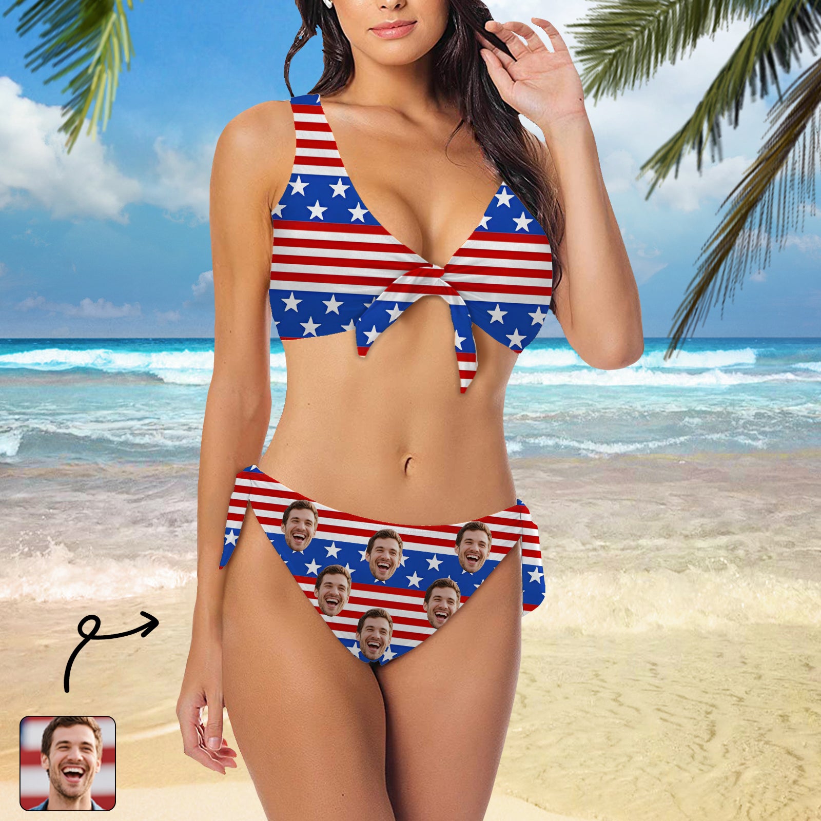 (Tax Included) Custom Face Classic Stars & Stripes Beachwear - Partial Portrait Accent