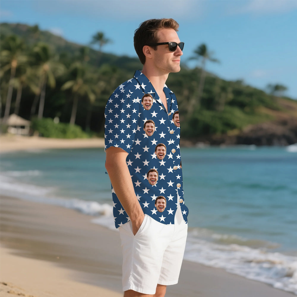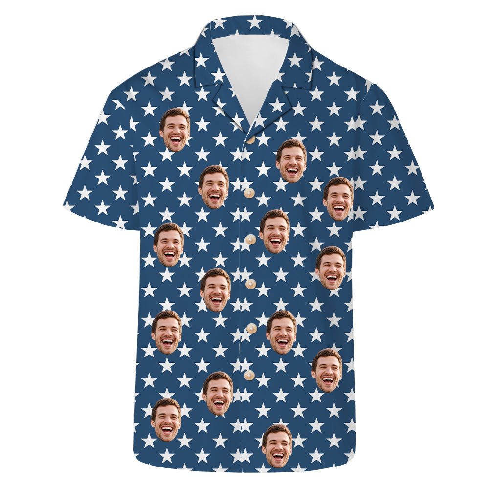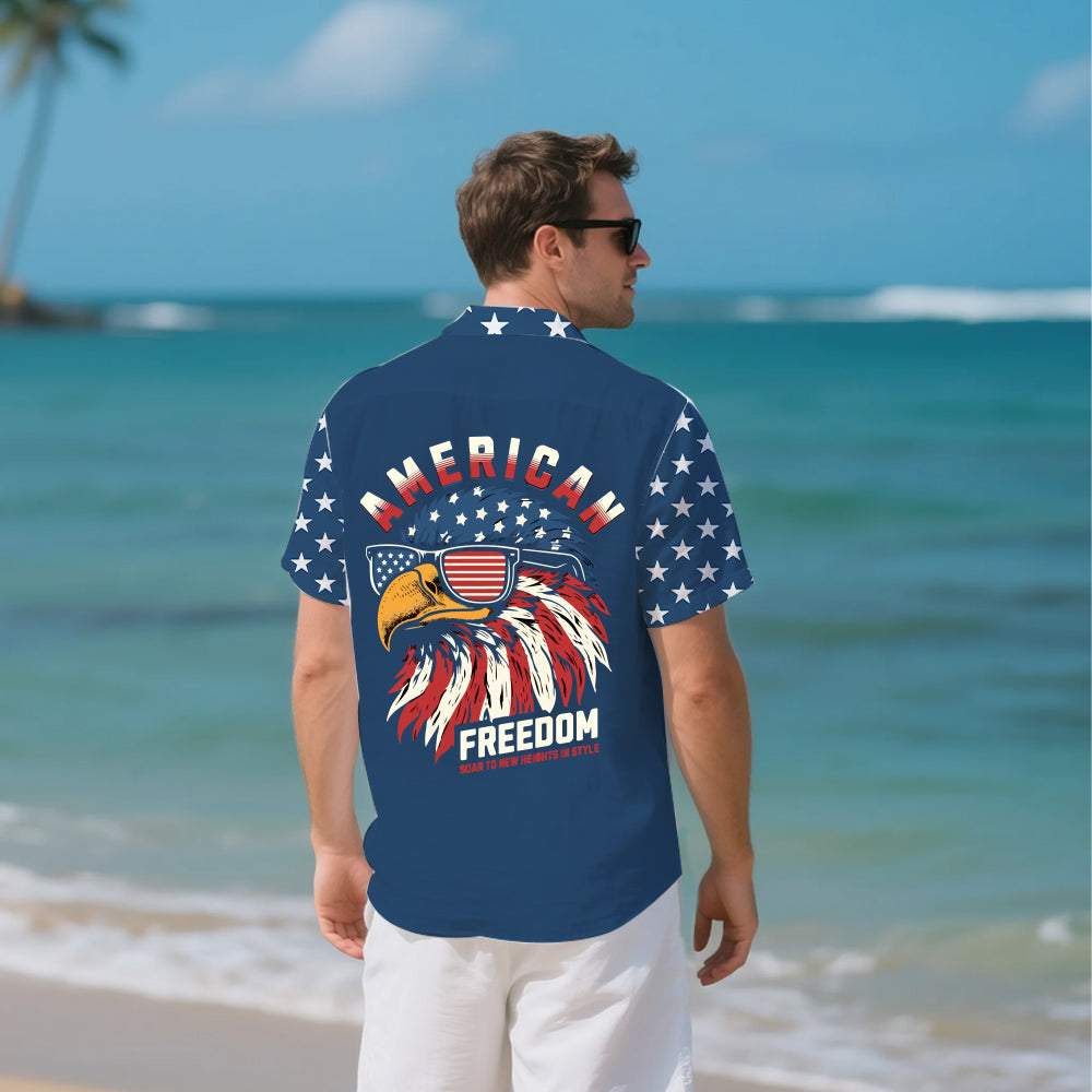 (Tax Included) Custom Face Cobalt Blue Hawaiian Shirt With Starred Eagle Motif For Liberty Celebrations