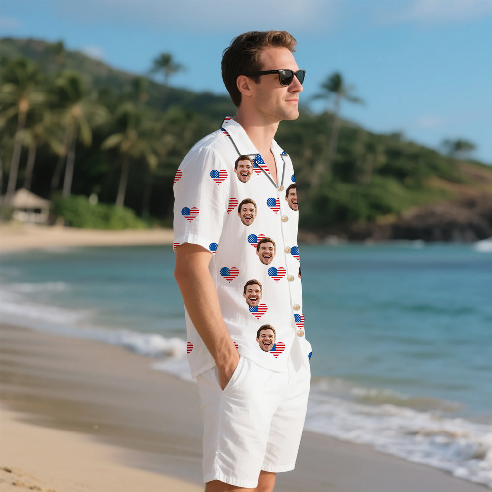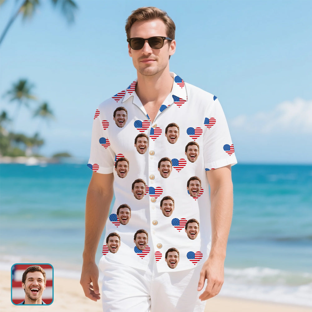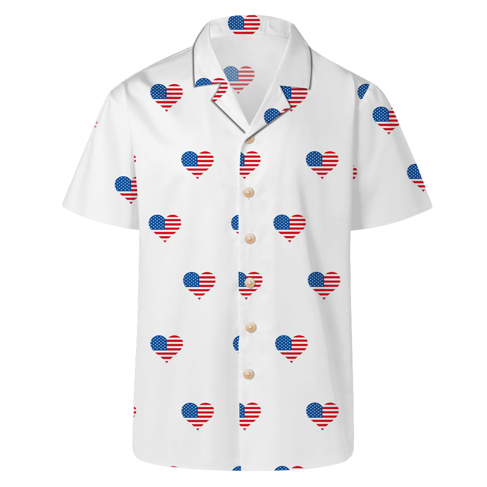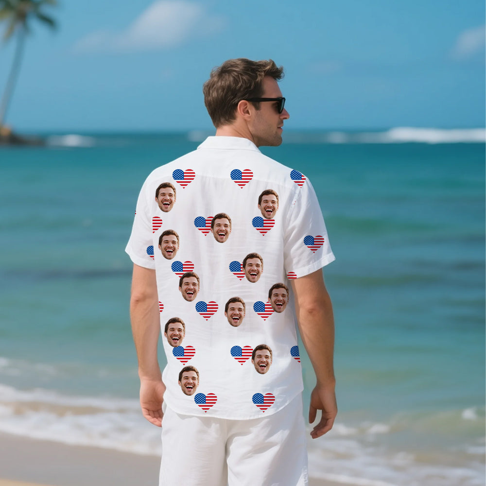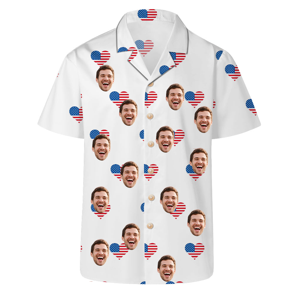 (Tax Included) Custom Face Crisp White Flag-Heart Fusion Shirt For Summer Festival Style