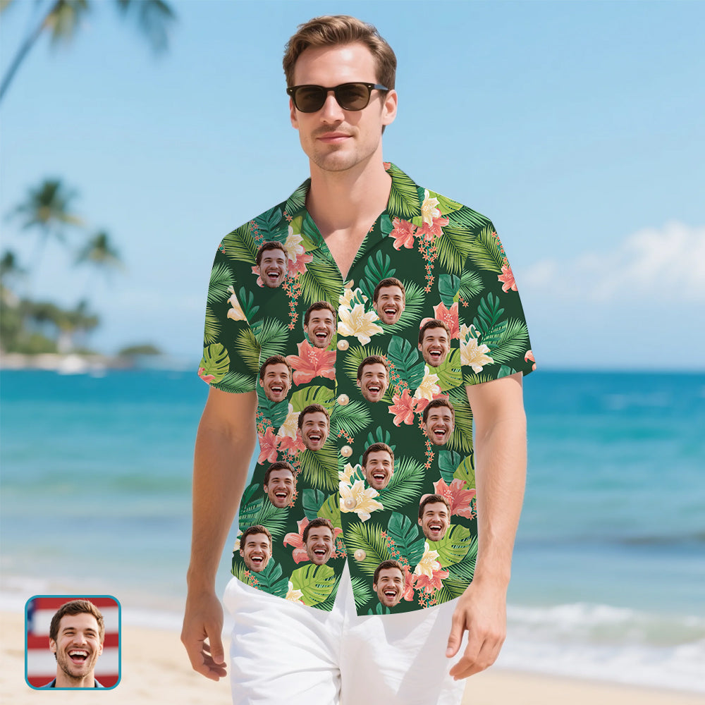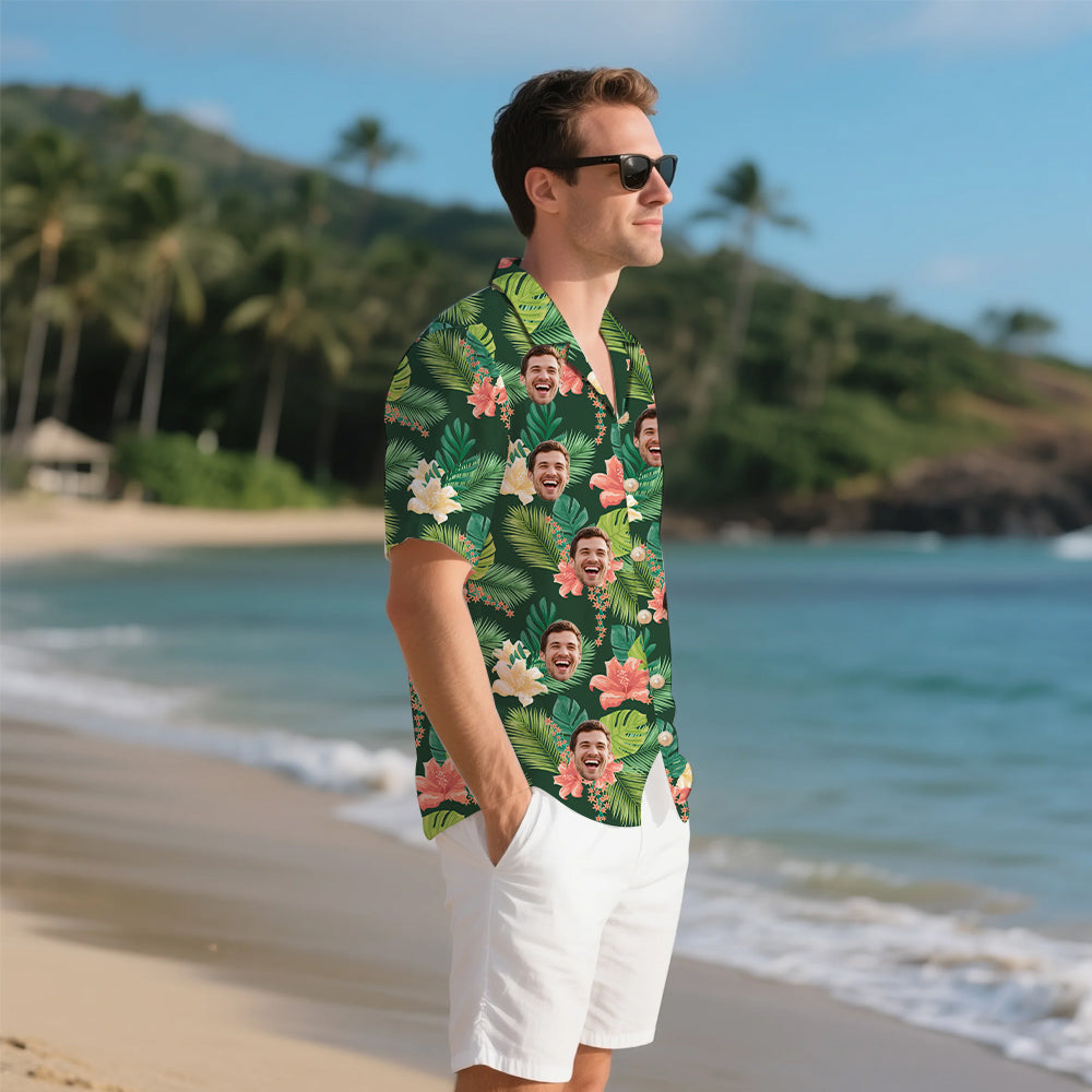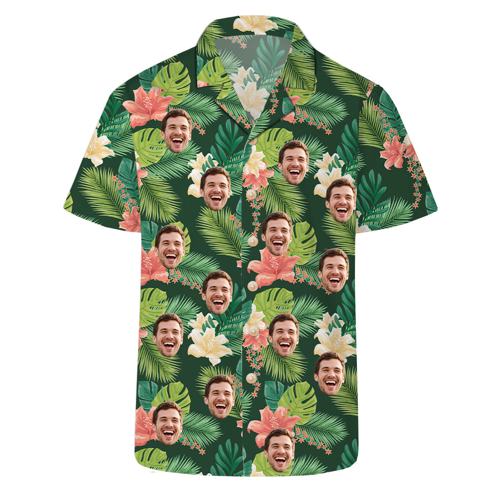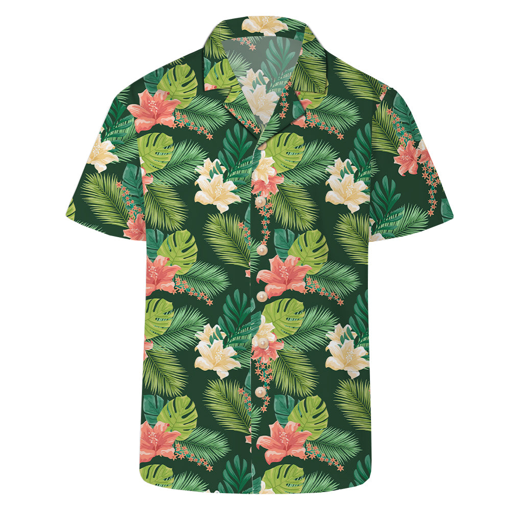 (Tax Included) Custom Face Emerald Green Island Shirt With Exotic Bloom Patterns For Vacation Vibes