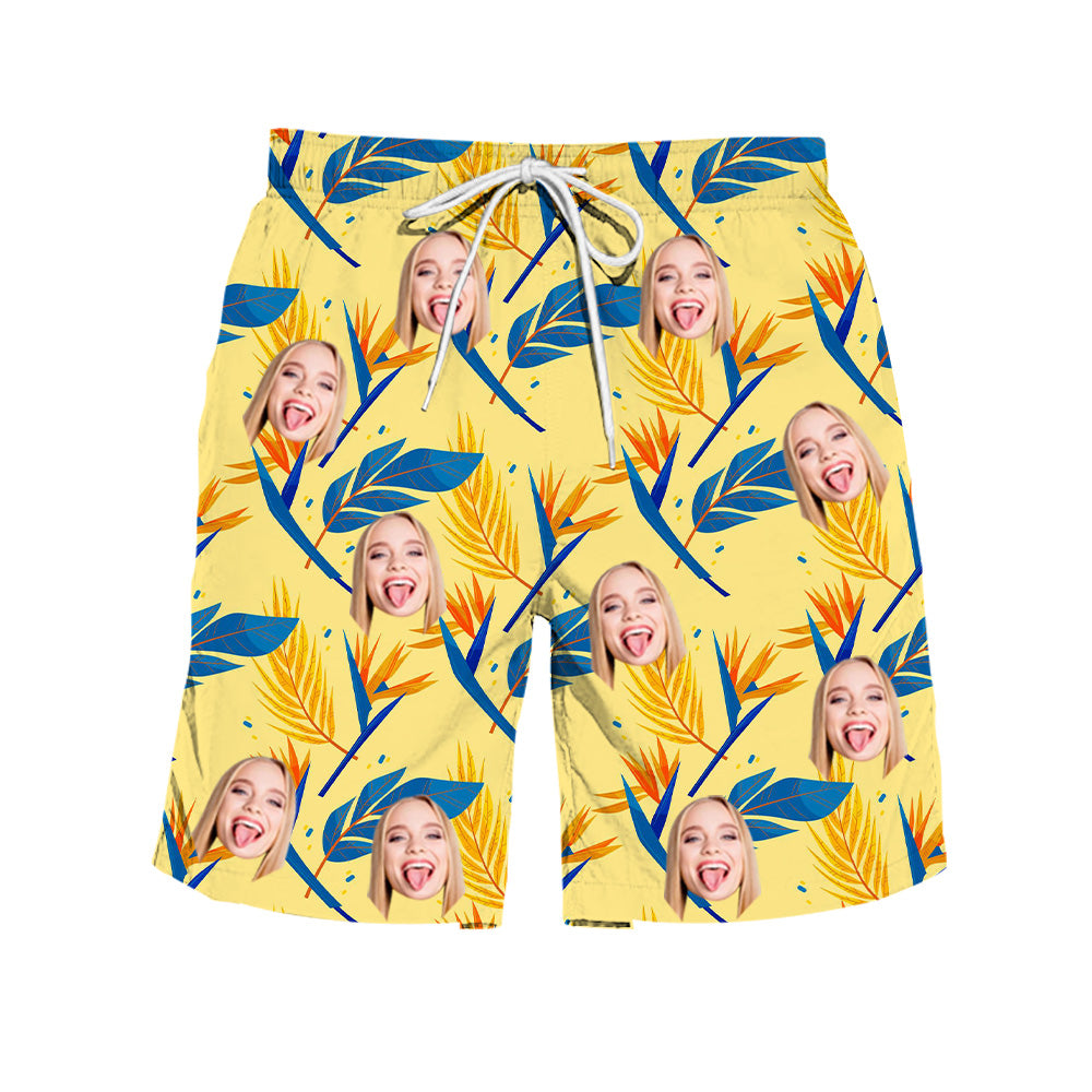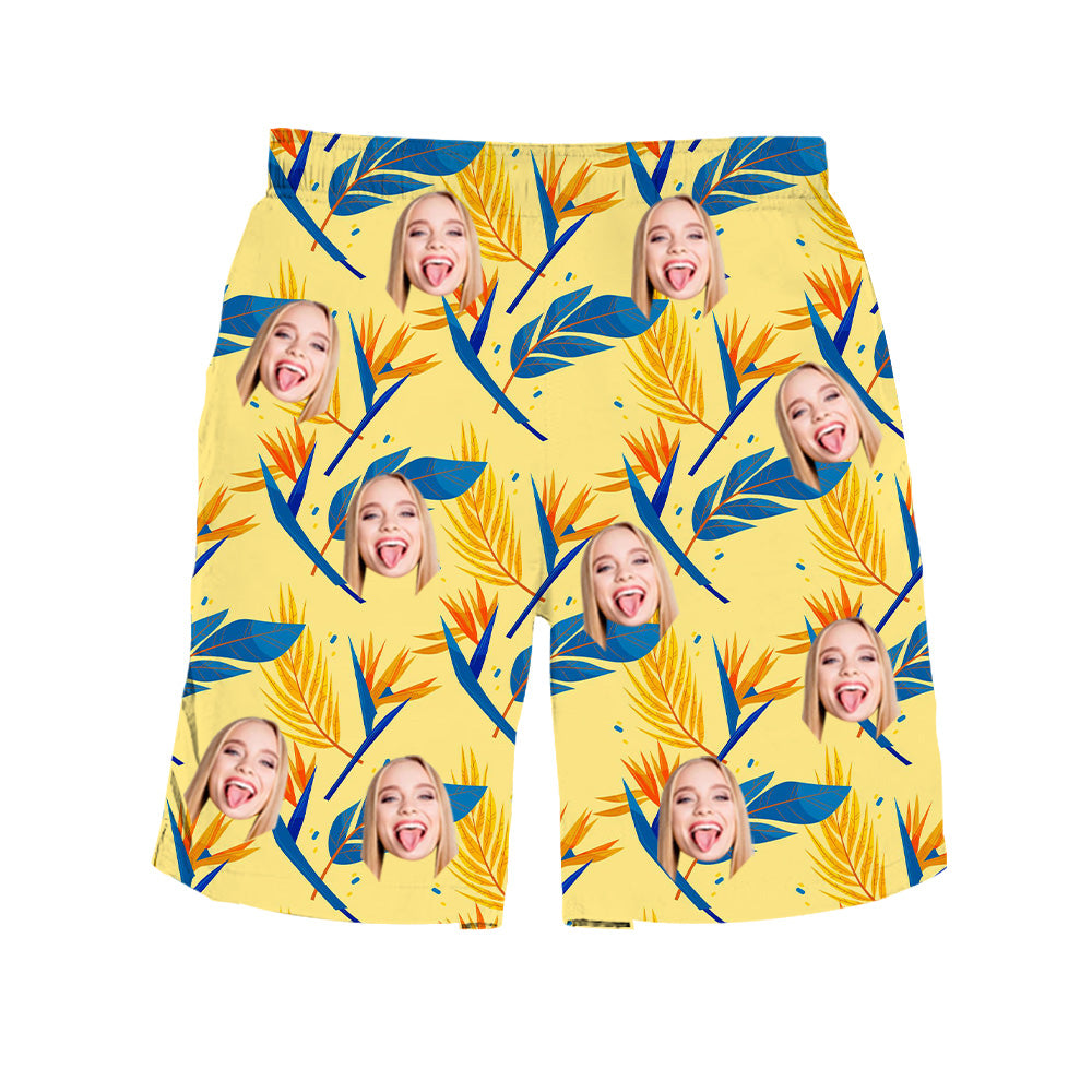 - Either to get a smile out of you or to use every day, you are going to love our custom beach shorts with photo. They are made with the best material and super soft you will enjoy wearing. Customize your beach shorts with your favorite photo face and make the perfect gift! Make the perfect beach shorts for family and friends that they will never forget about.