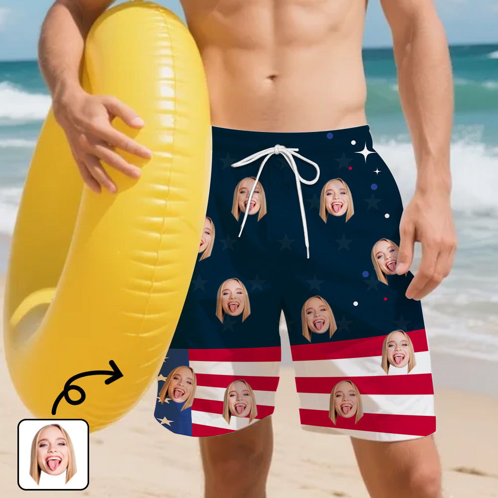 - Either to get a smile out of you or to use every day, you are going to love our custom beach shorts with photo. They are made with the best material and super soft you will enjoy wearing. Customize your beach shorts with your favorite photo face and make the perfect gift! Make the perfect beach shorts for family and friends that they will never forget about.