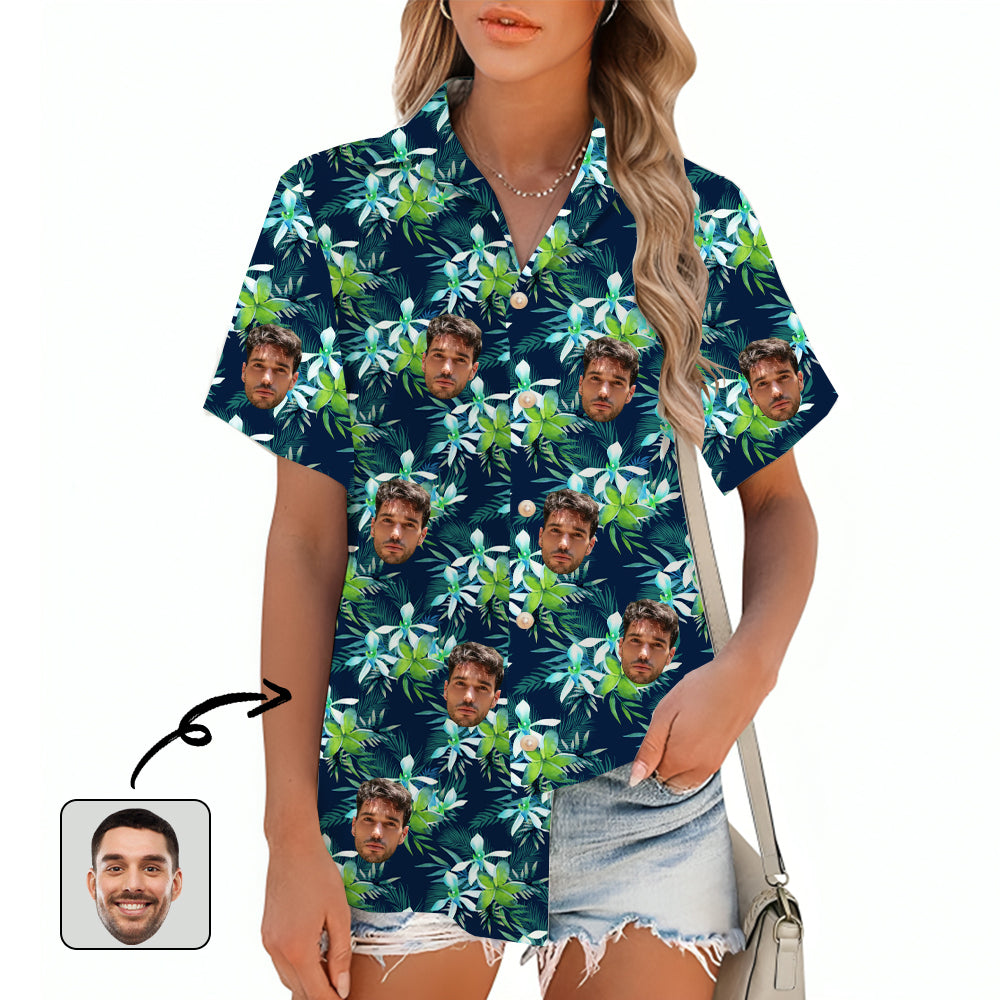 (Tax Included) Custom Face Hawaiian Shirt - Personalized Tropical Party Wear For Women Vacation