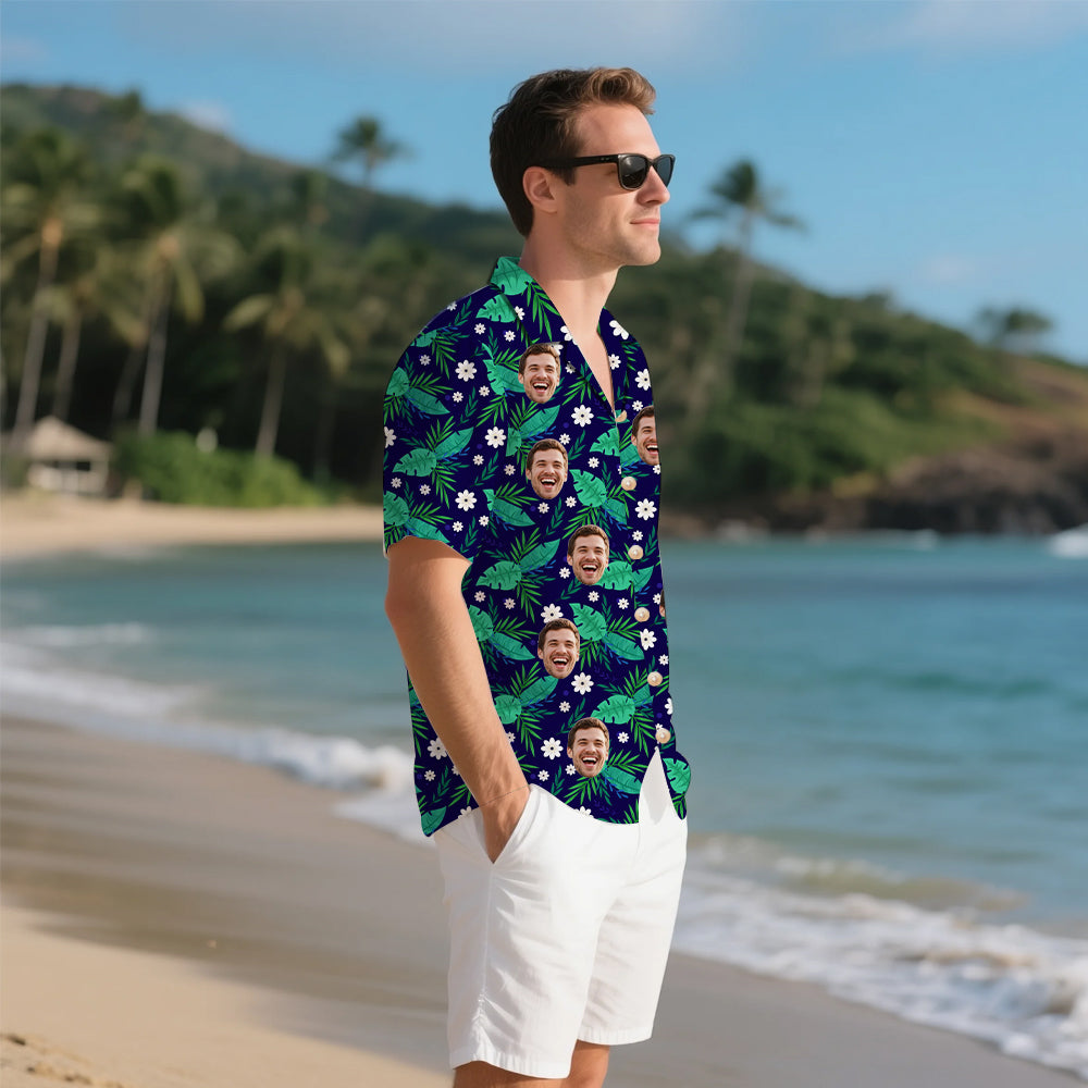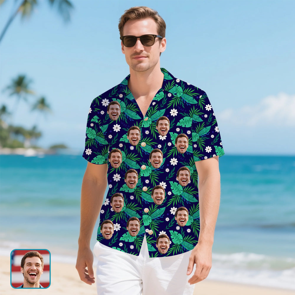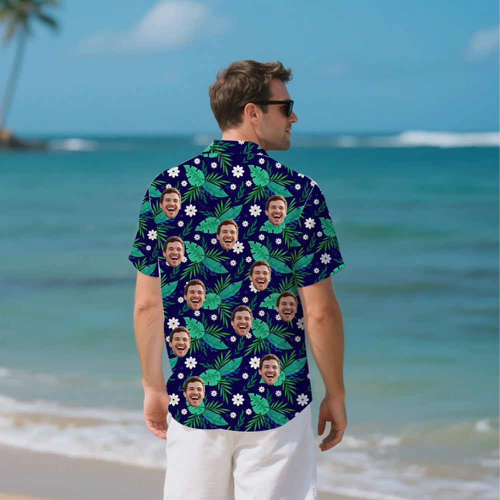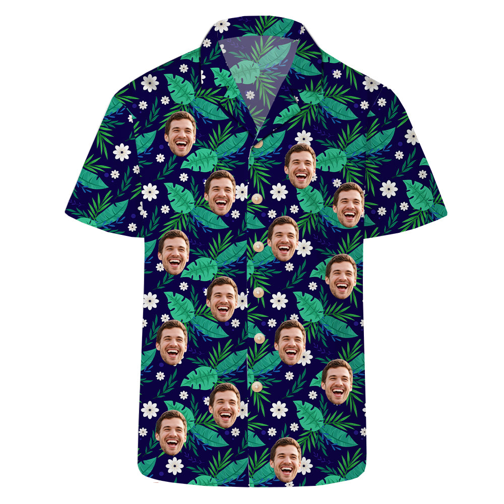 (Tax Included) Custom Face Hawaiian Shirt Personalized Vacation Party with Green Leaves White Flowers