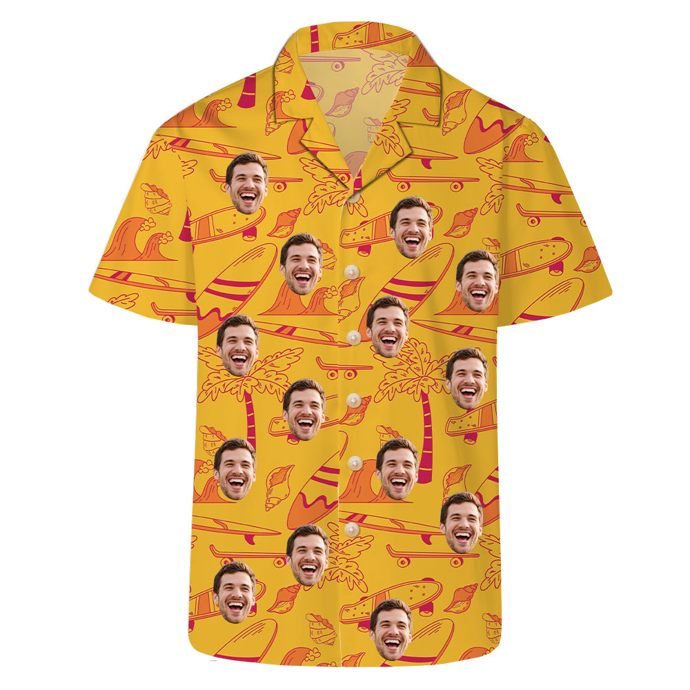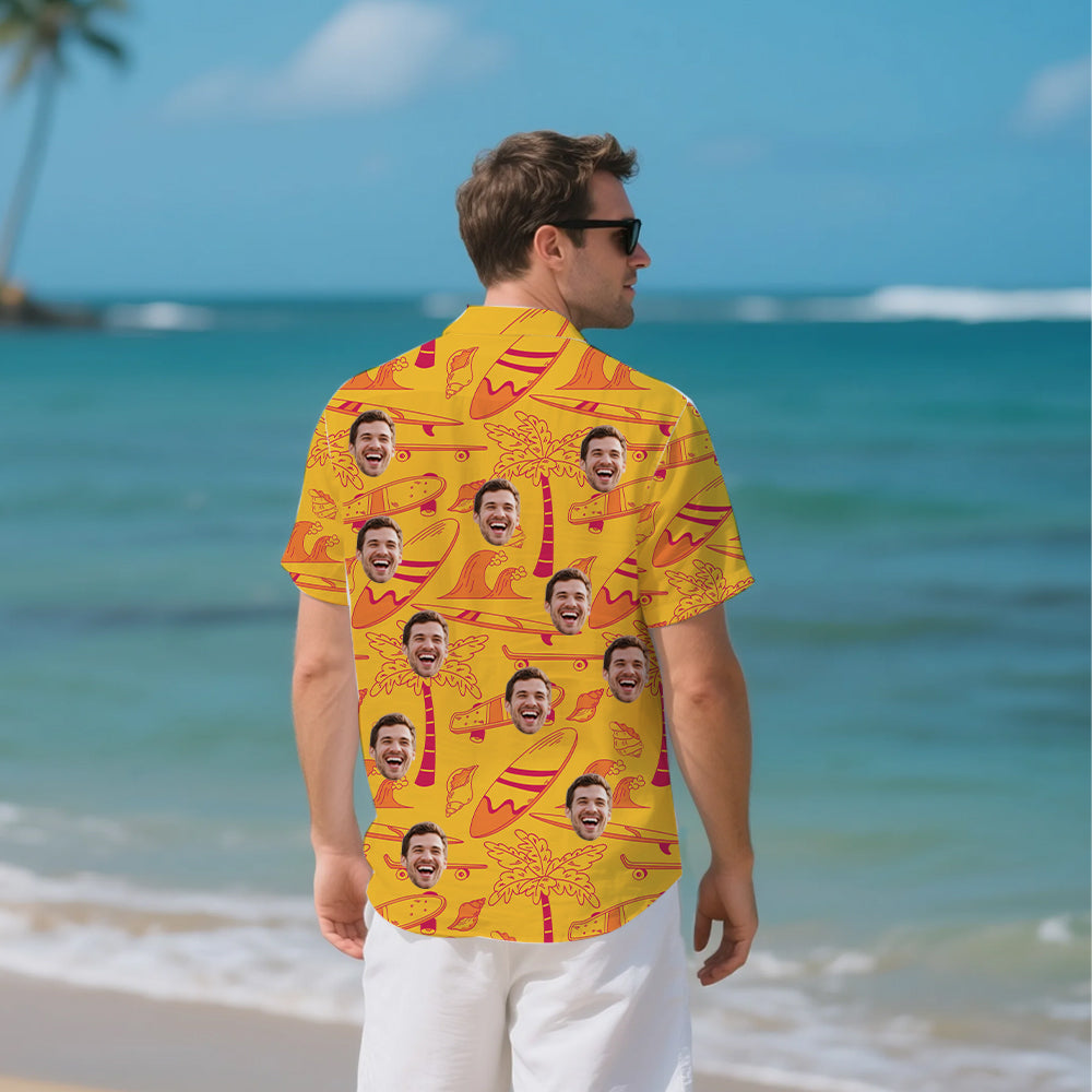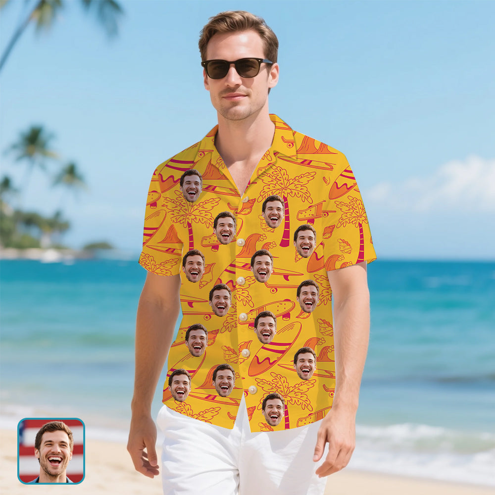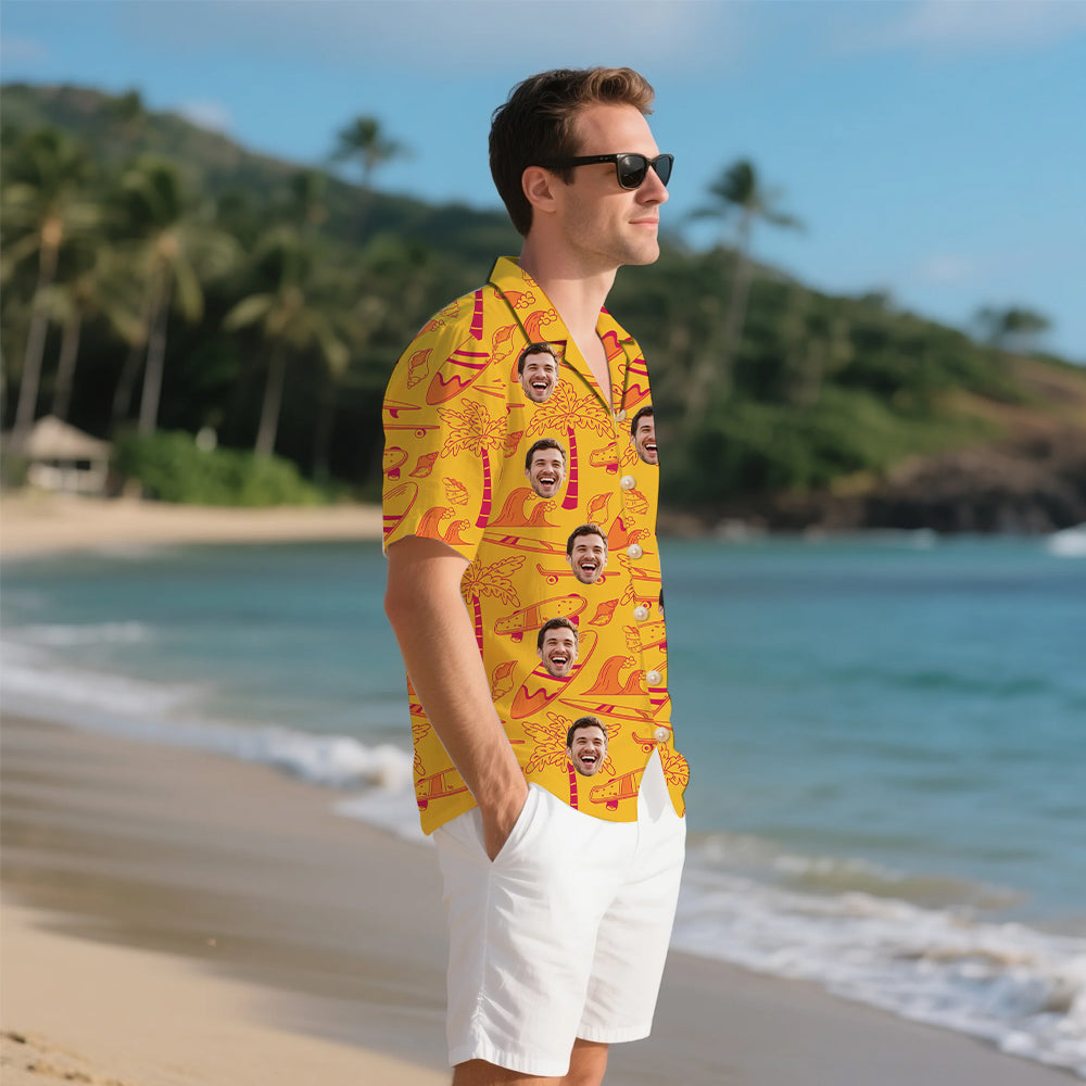 (Tax Included) Custom Face Hawaiian Shirt Personalized Vacation Party with Yellow Surfboards Palms
