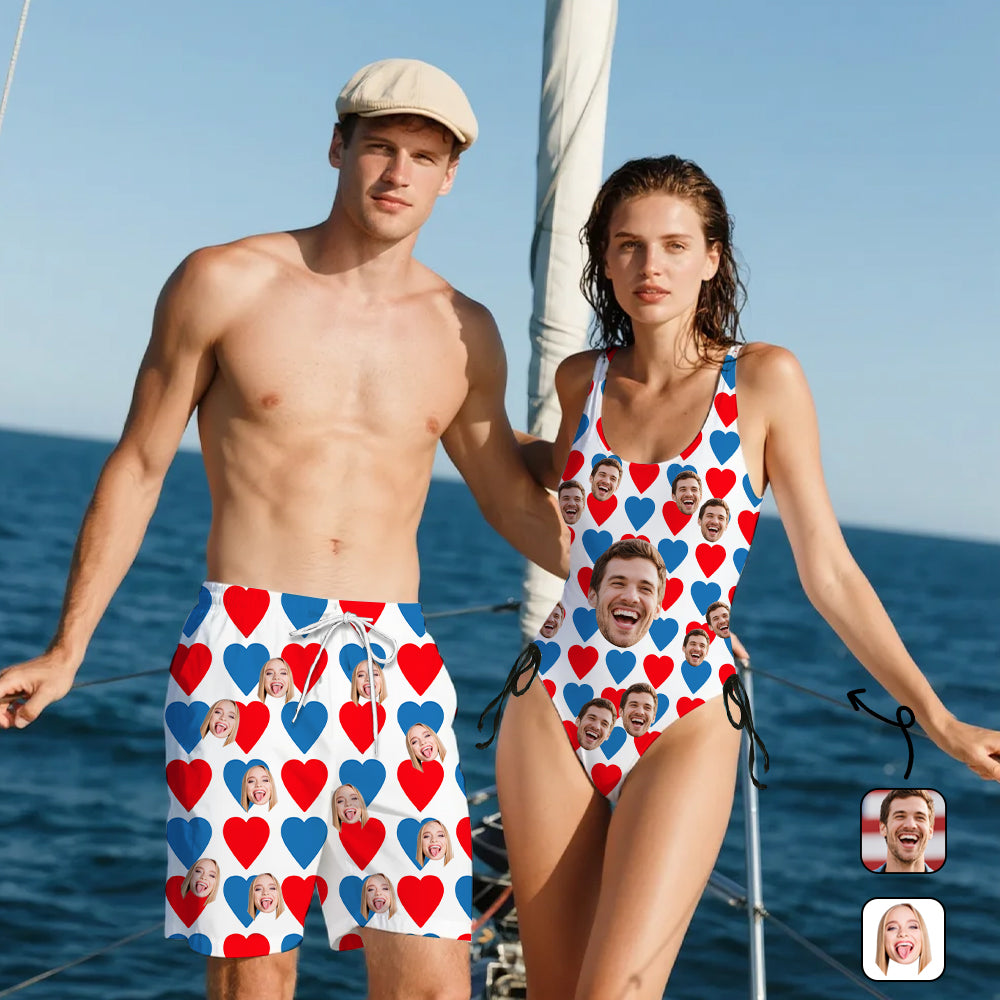 (Tax Included) Custom Face Nautical Flag Hearts Swim Set For Romantic Sailing Getaways