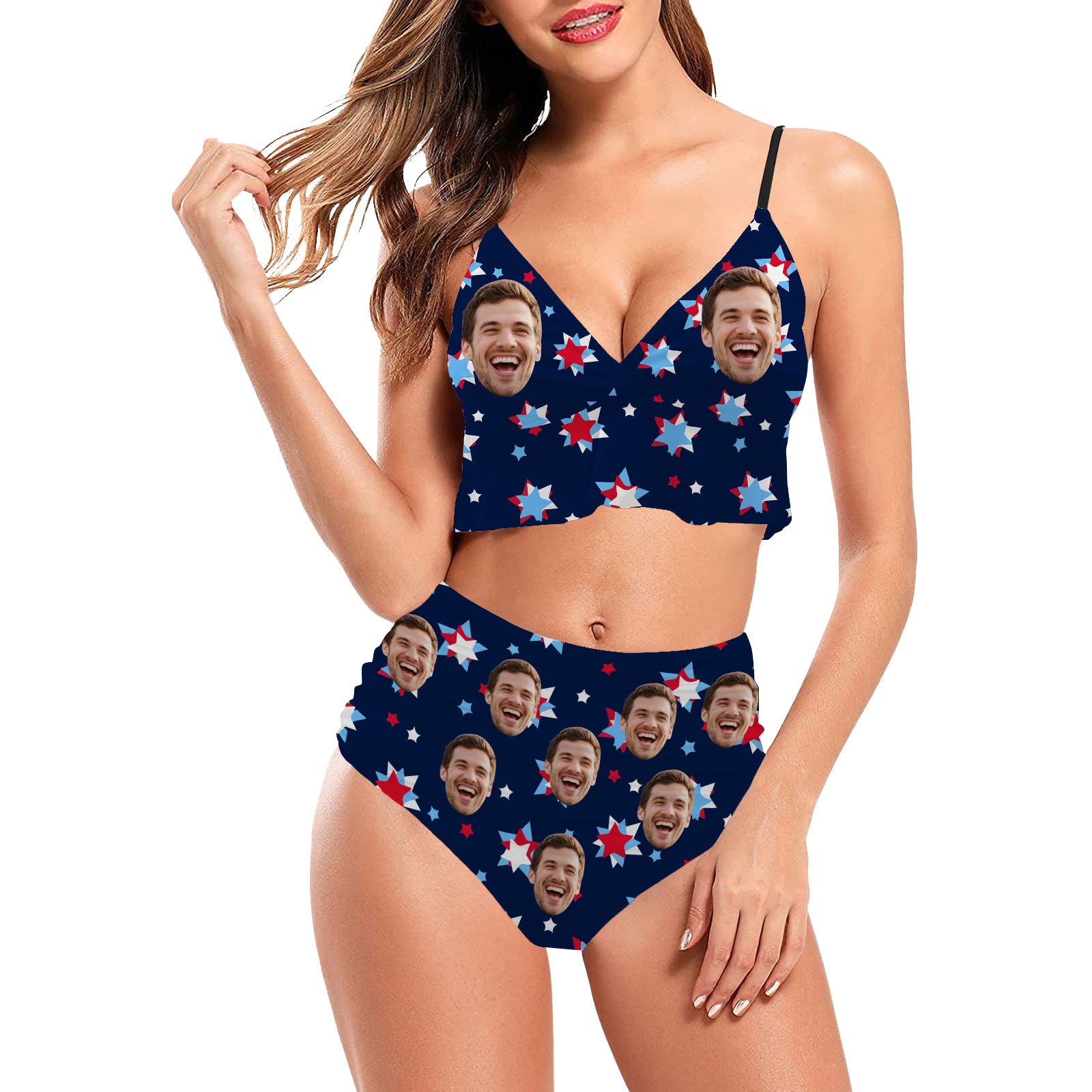(Tax Included) Custom Face Navy Firework Bikini - Starry Portrait Swimwear