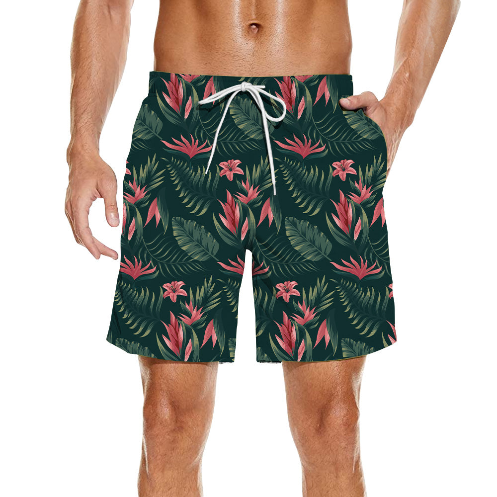 (Tax Included) Custom Face Oversized Monstera Leaf & Flowers Beach Shorts